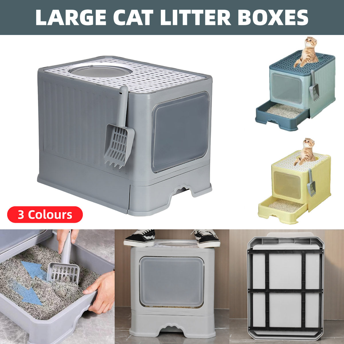 Large Fully Enclosed Cat Litter Box Cat Toilet Pet Litter Tray Odor Control