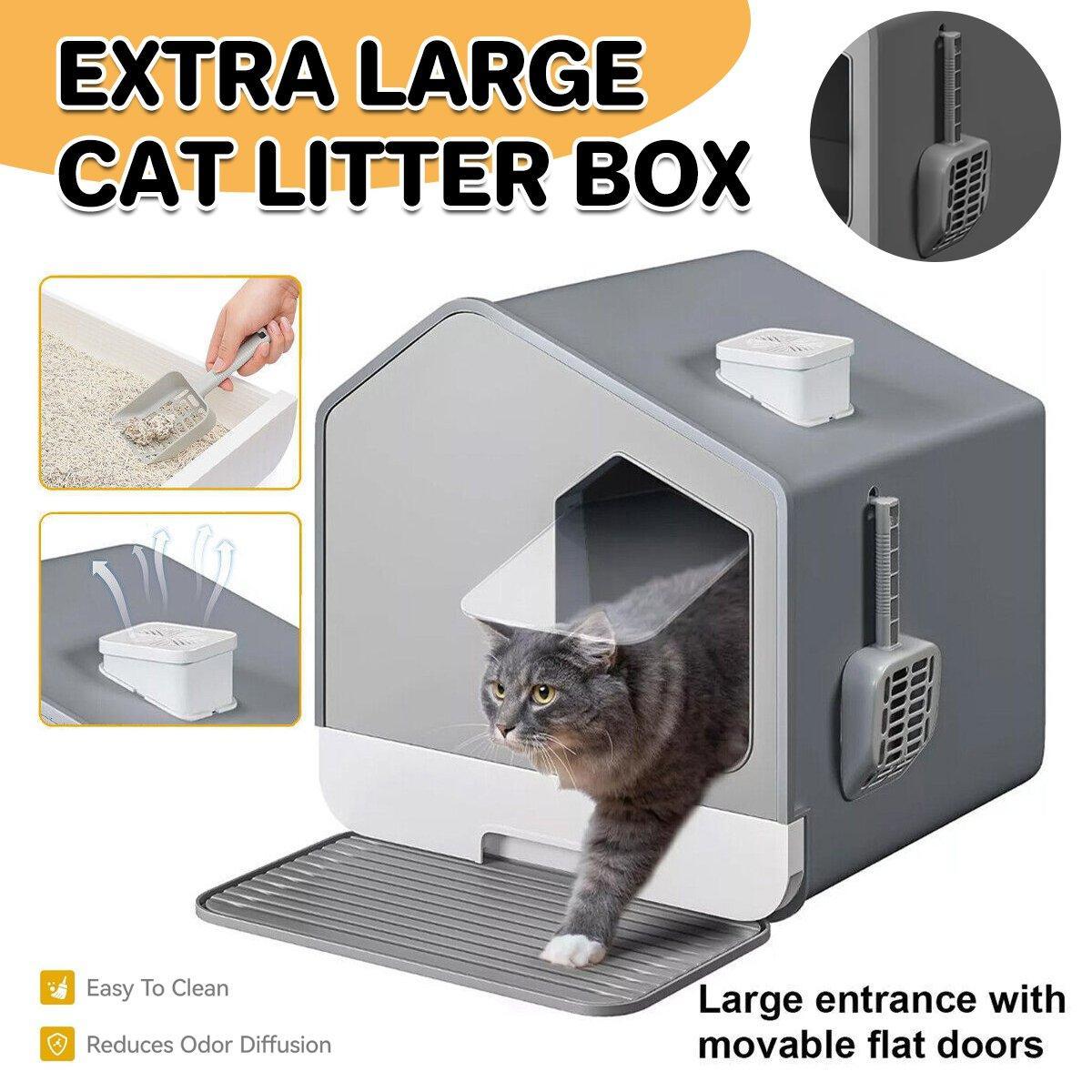 Large Fully Enclosed Cat Litter Pan House Easy Clean Litter Box for Indoor Use