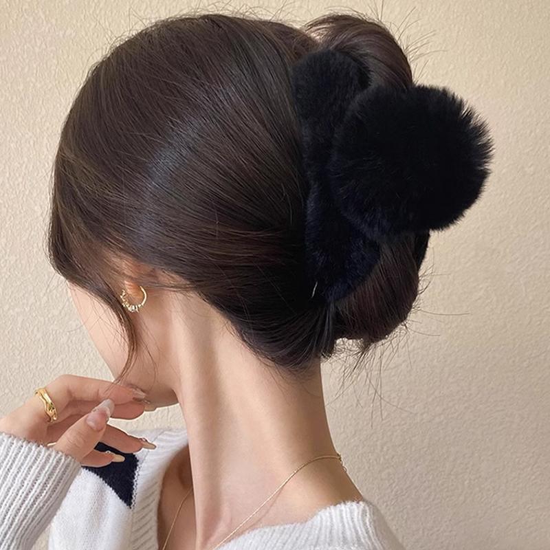 Large Plush Hair Claw Imitation Fur Big Shark Clip Faux Rabbit Fur Hair Clip