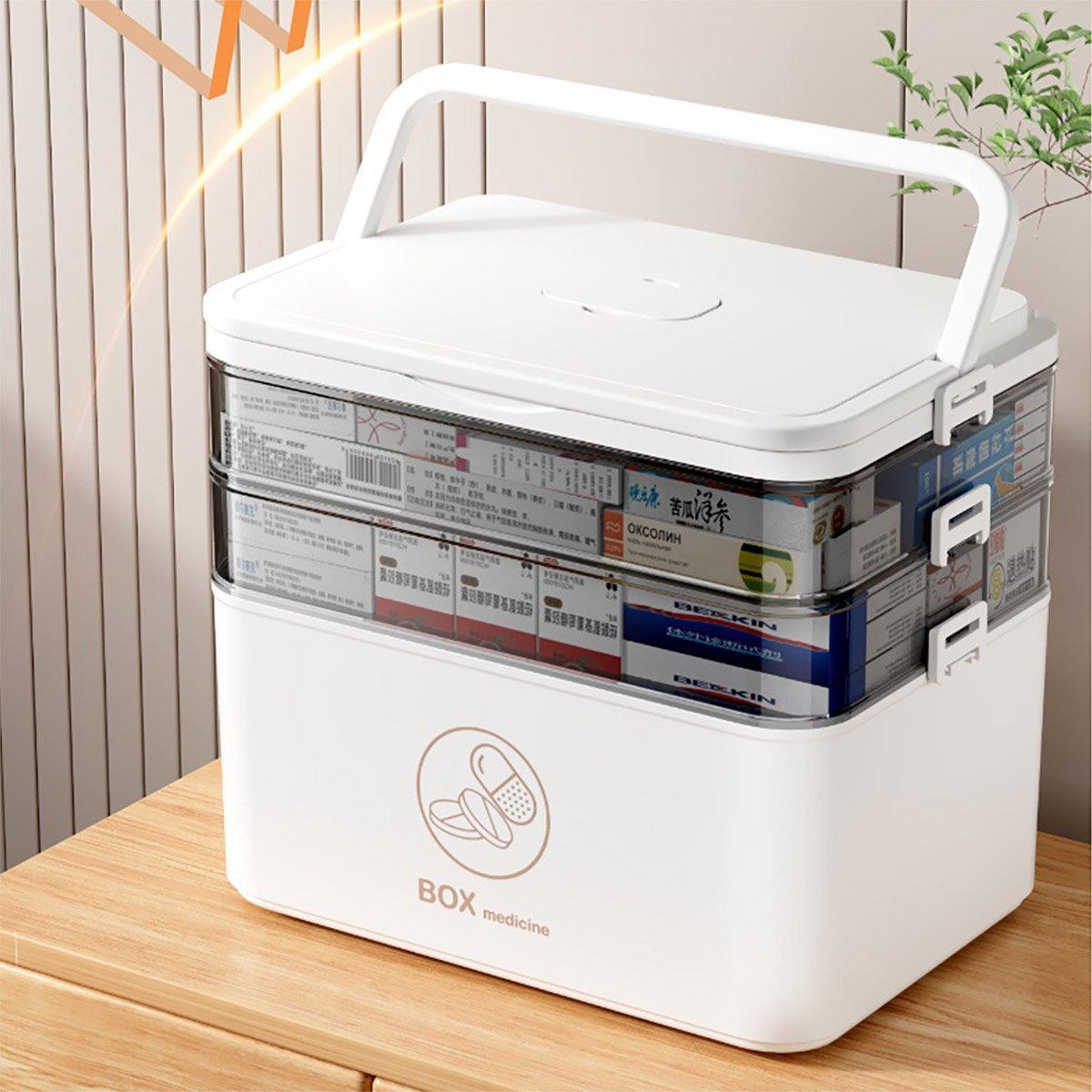 Large Portable Medicine Storage Box Multi-layer Plastic First Aid Emergency Box