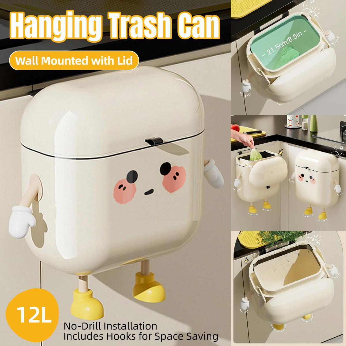 Large Waterproof Wall Mounted Rubbish Bin for Kitchen Bathroom Waste Storage