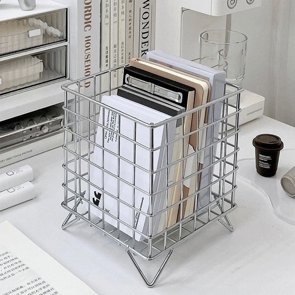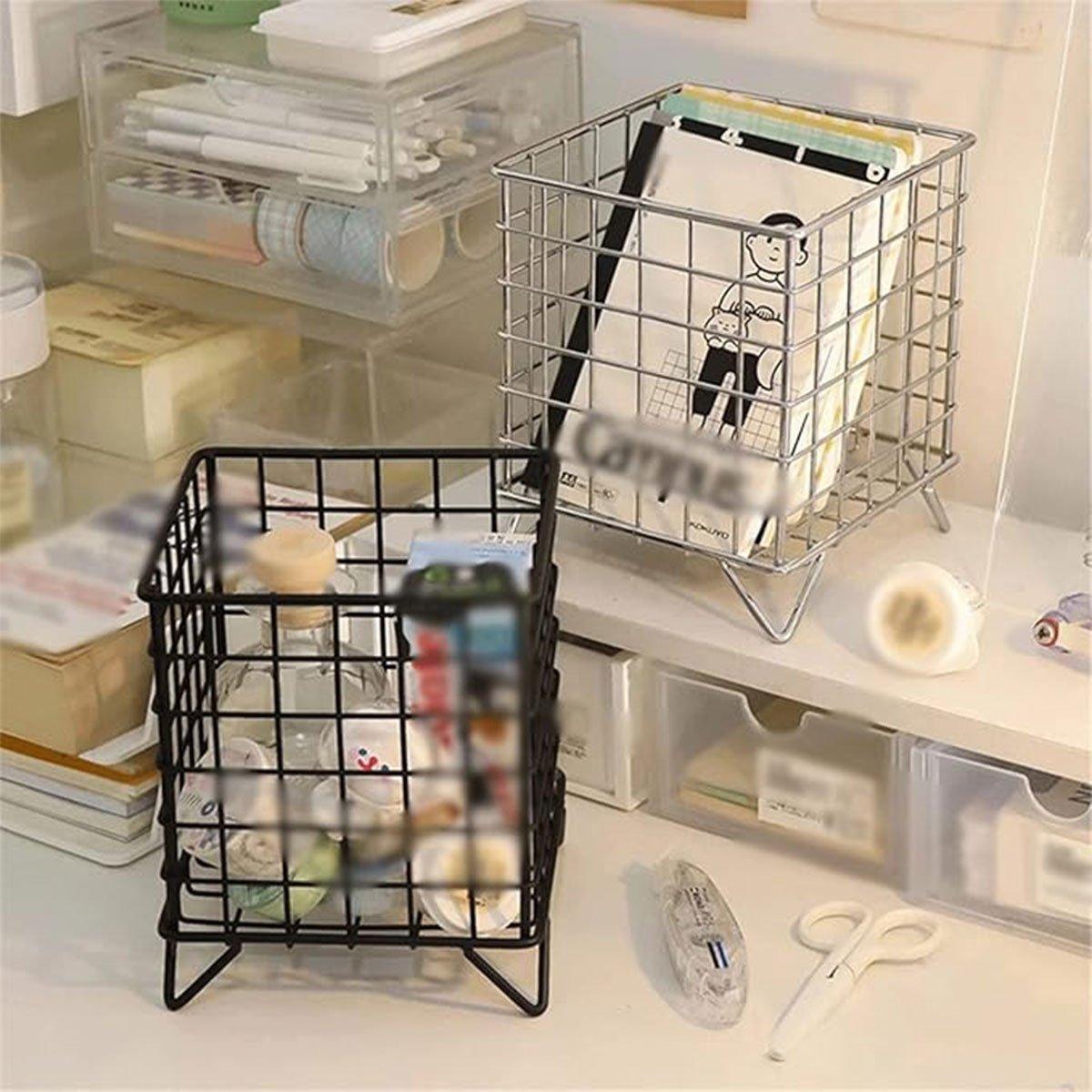Large Wrought Iron Storage Basket Desktop Organizer Box for Dormitory Cosmetics