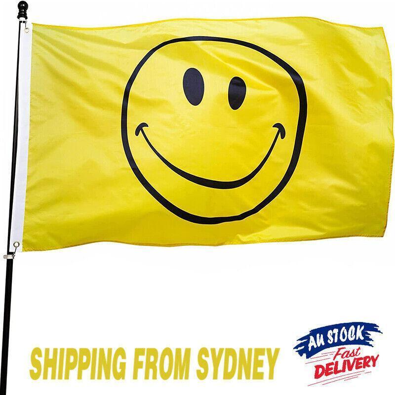 Large Yellow Smiley Face Flag Heavy Duty Outdoor Happy 90 X 150 CM - 3ft x 5ft