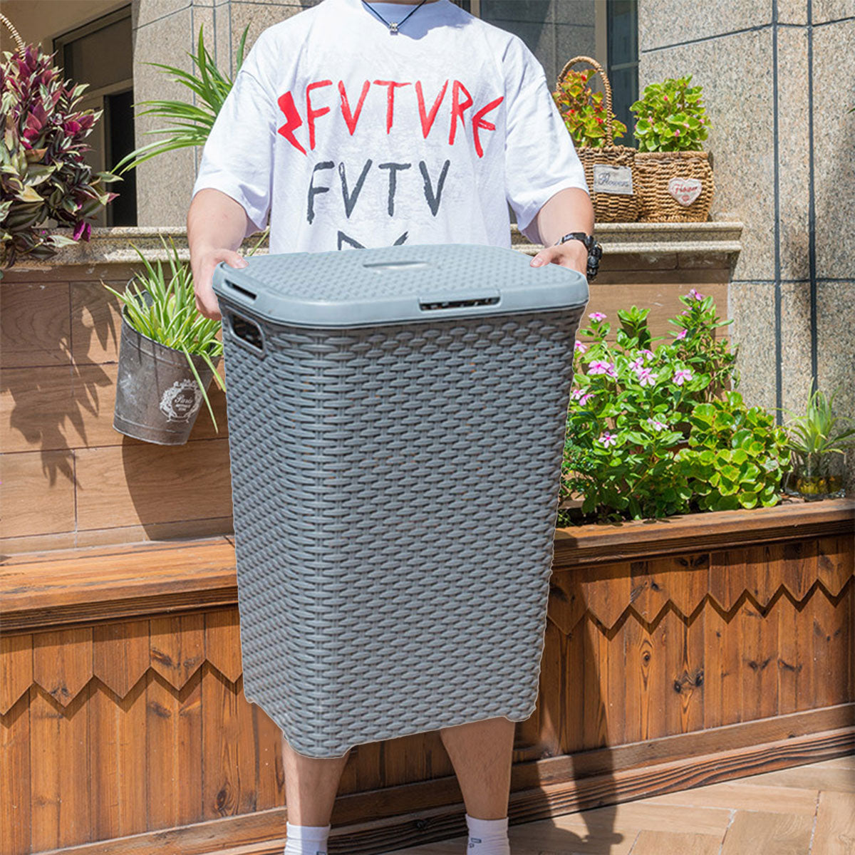 Laundry Basket Plastic Rattan Style Large Capacity Clothes Toy Storage Organizer