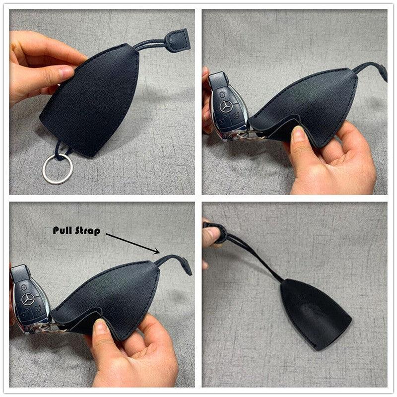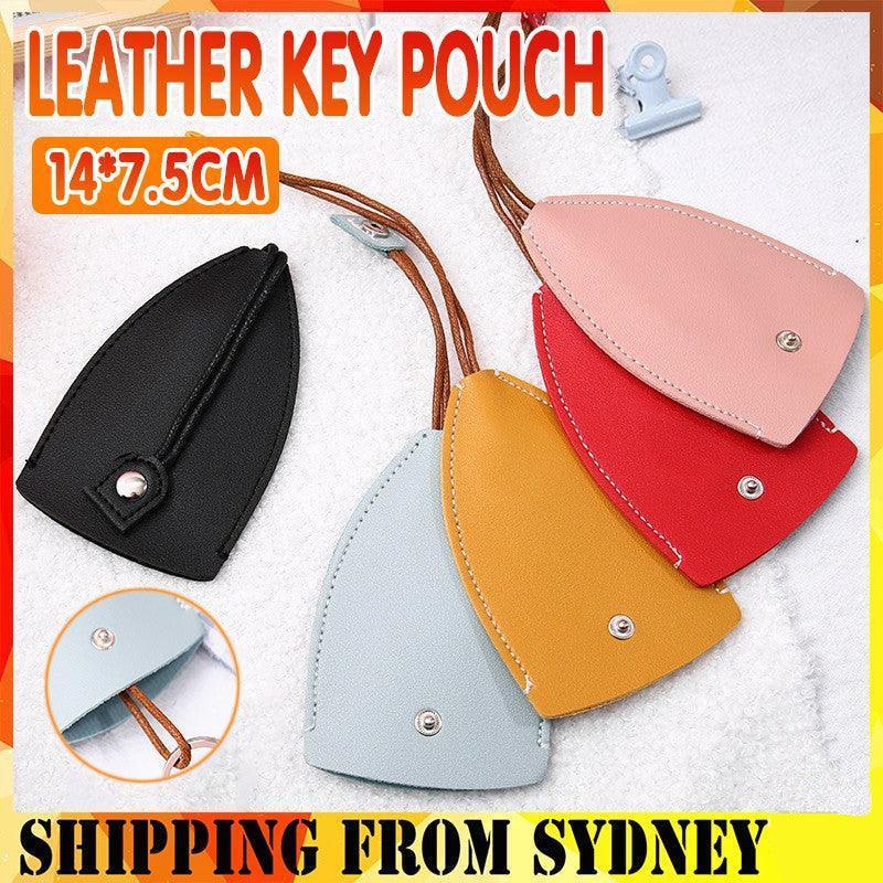 Leather Key Pouch With Pull Strap Case Holder Bag Ring Organizer House Car Keys