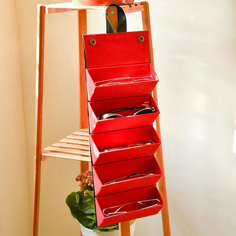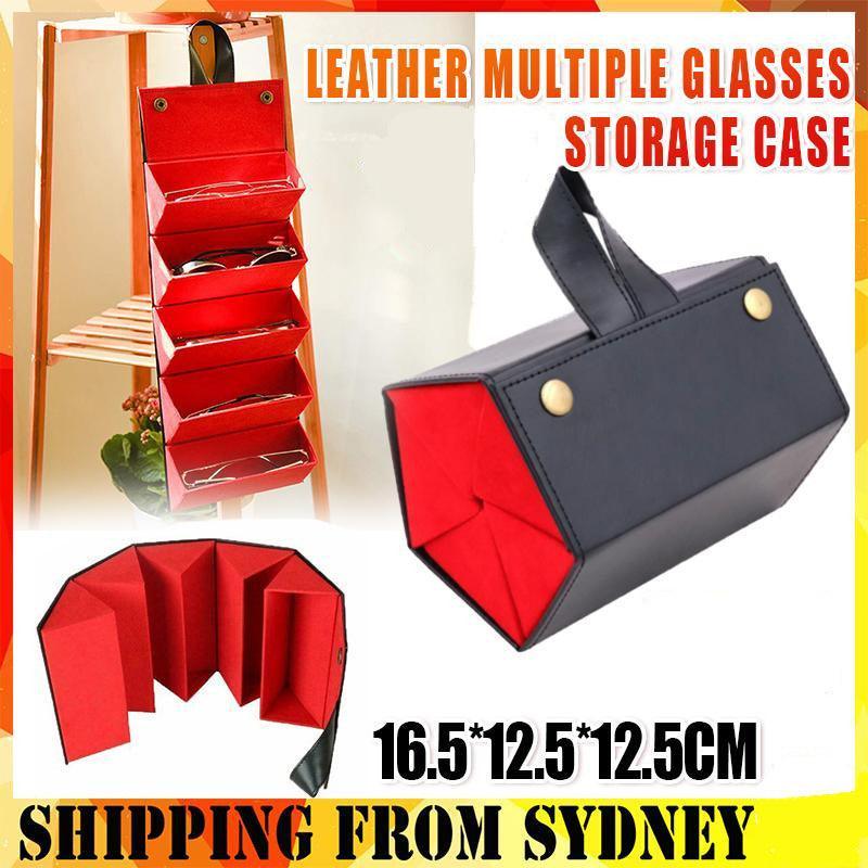 Leather Multiple Glasses Storage Case 5 Slots Sunglasses Organizer Bag