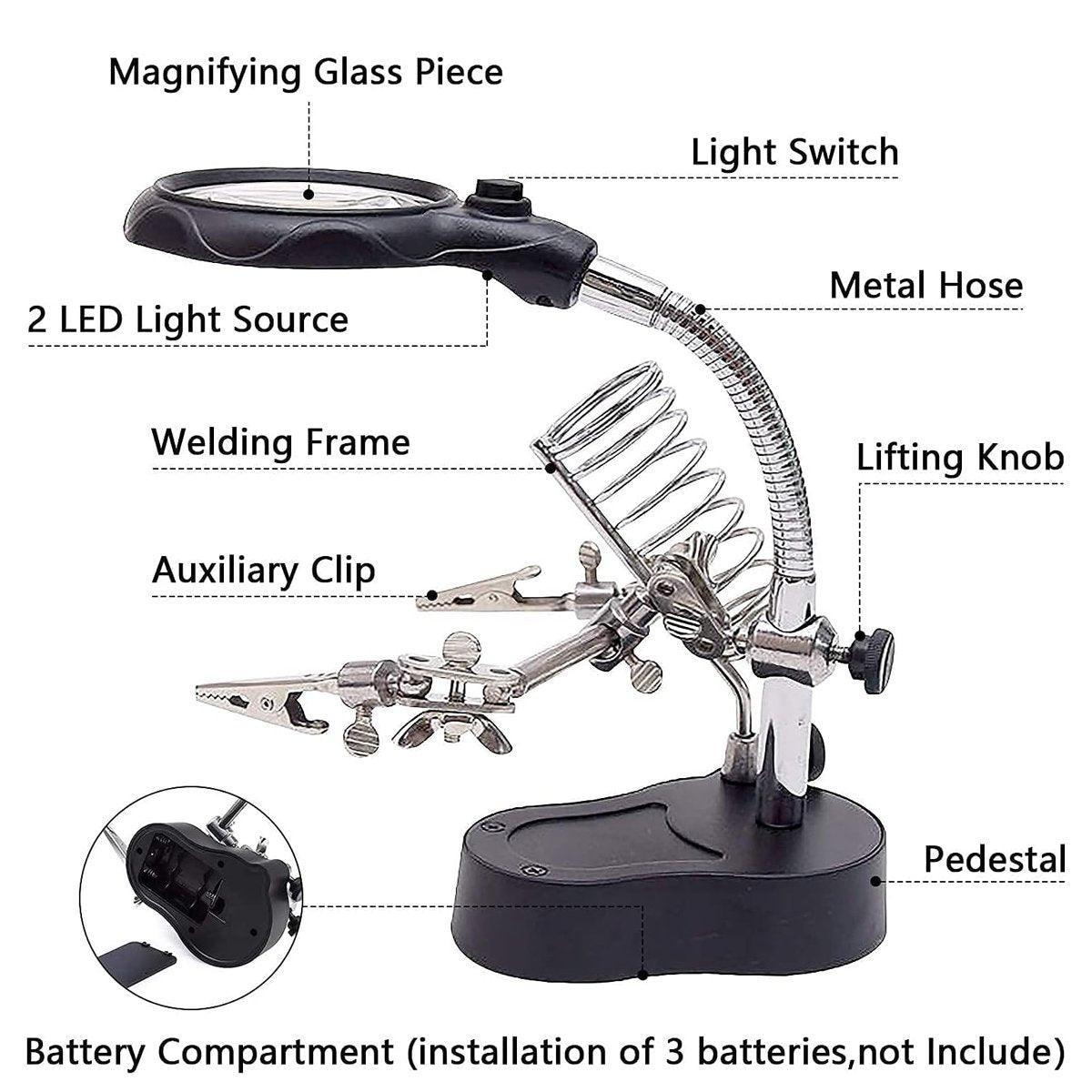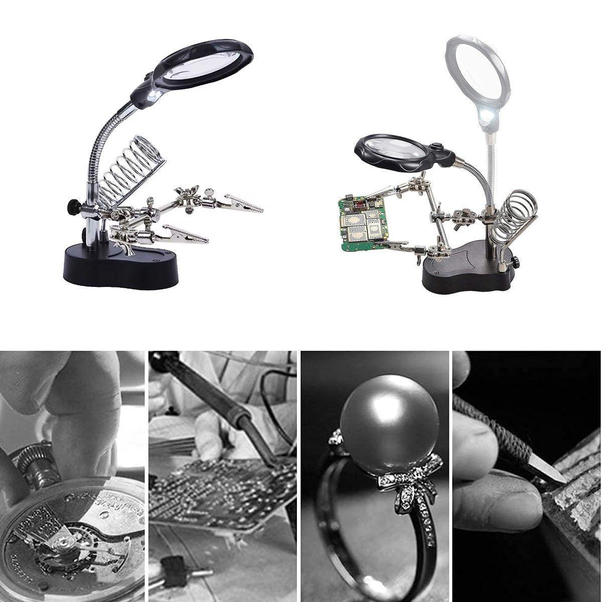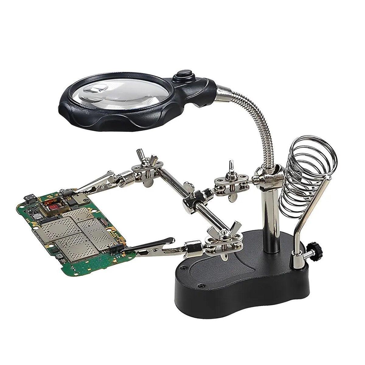 LED Magnifier Stand Holder Soldering Iron Tool Third Hand Helping Station