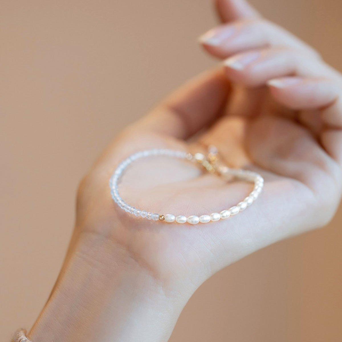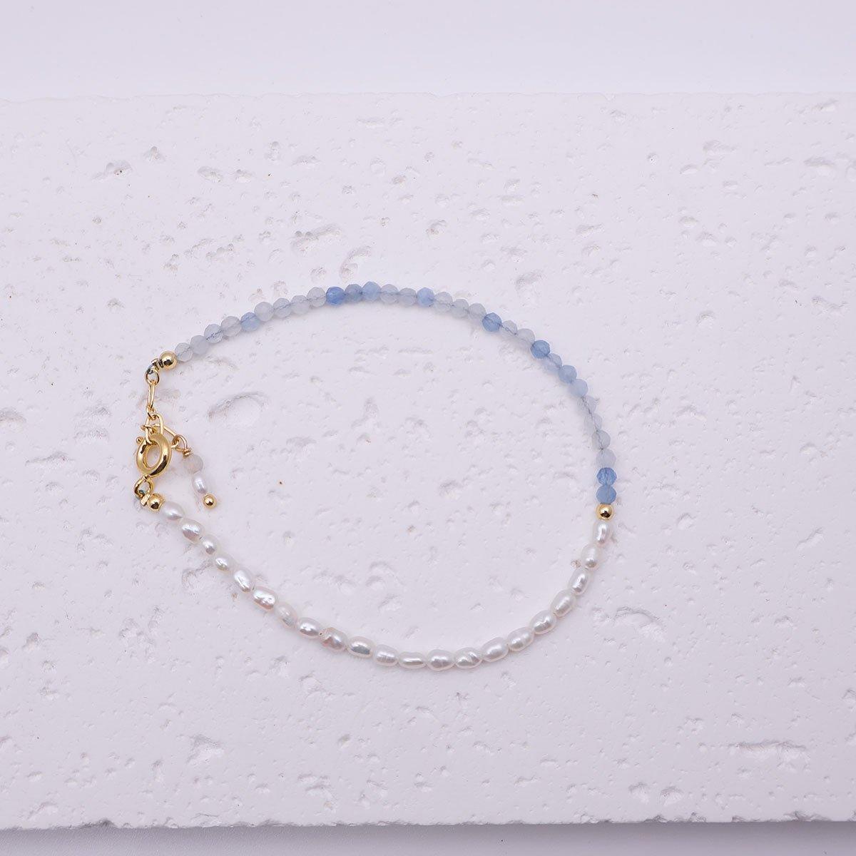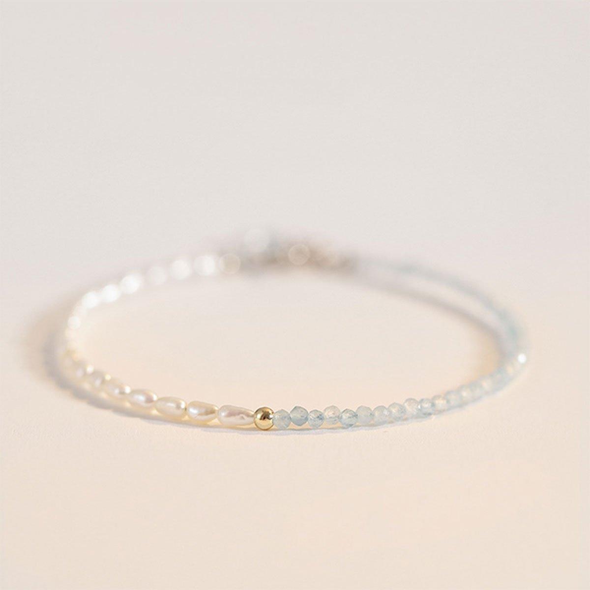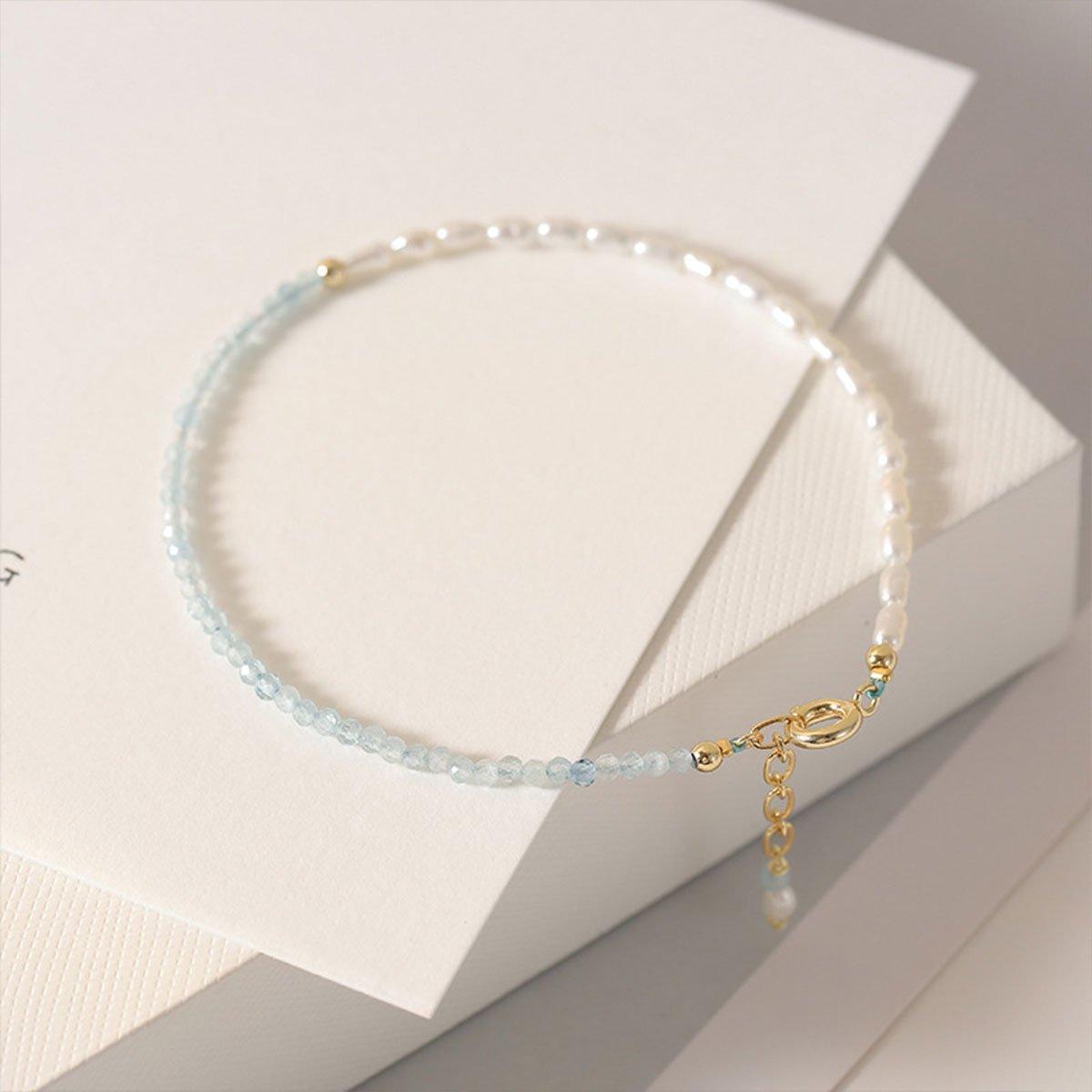 Light Blue Bracelet for Women Unique Design Small Pearl String Fine Jewelry