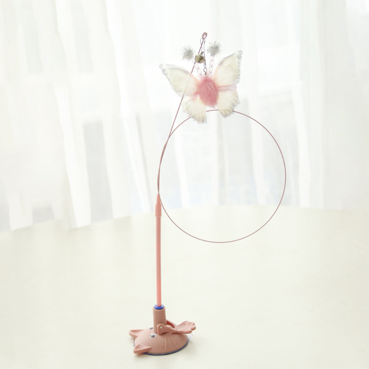 Suction Cup Cat Toy with Butterfly Interactive PVC Teaser Stick for Indoor Cats