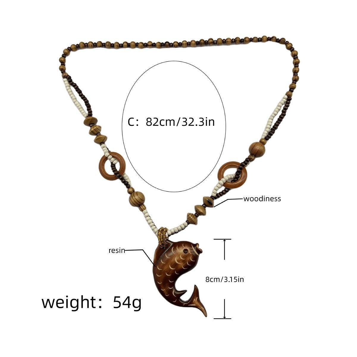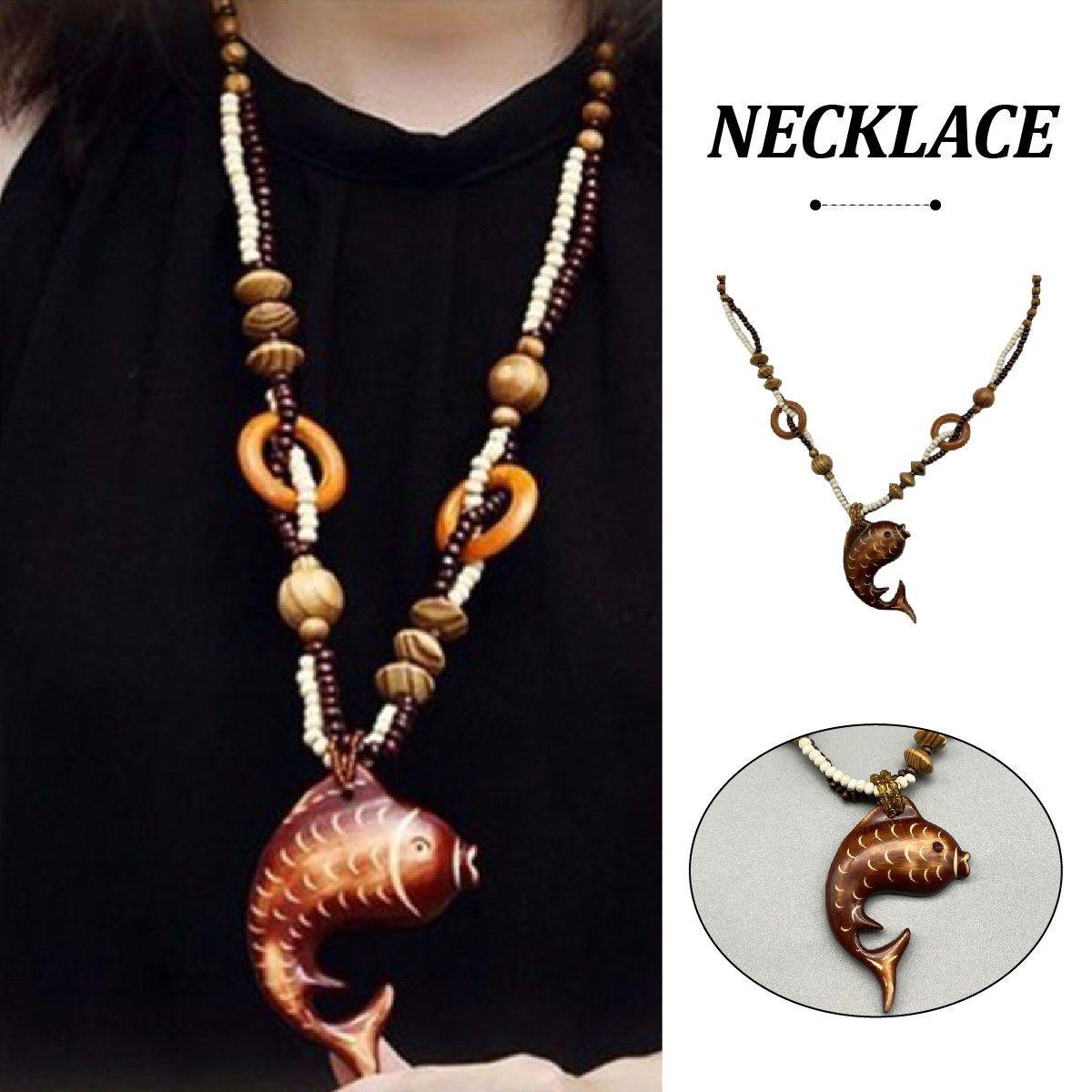 Long Wood Necklace with Fish Pendant Unique Fashion Jewelry Ornament