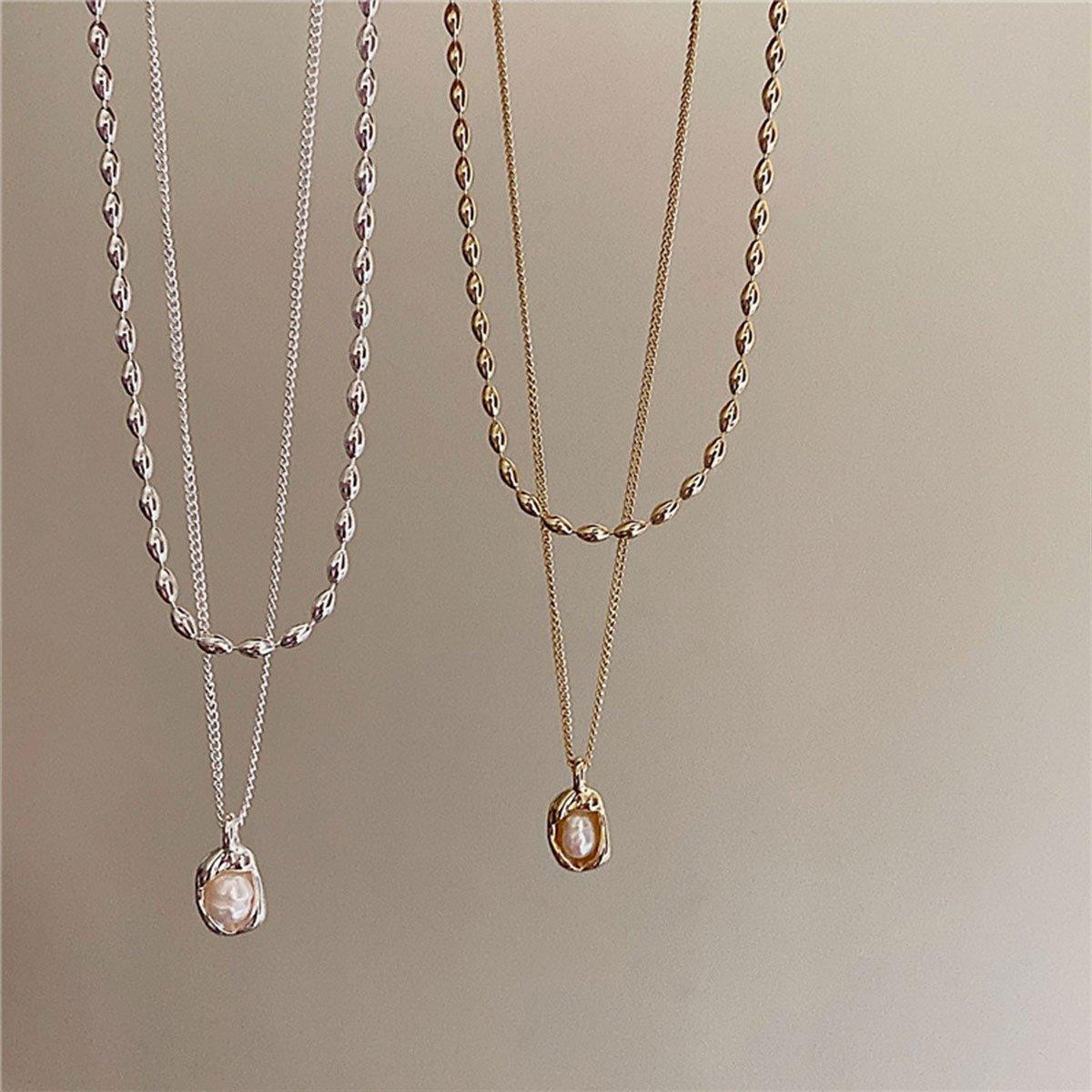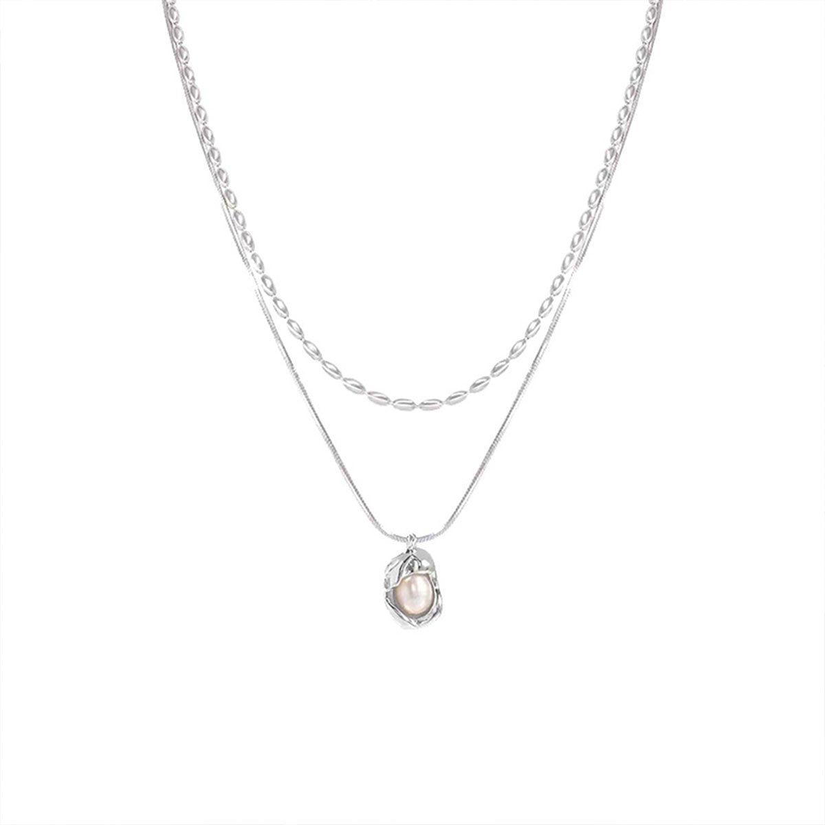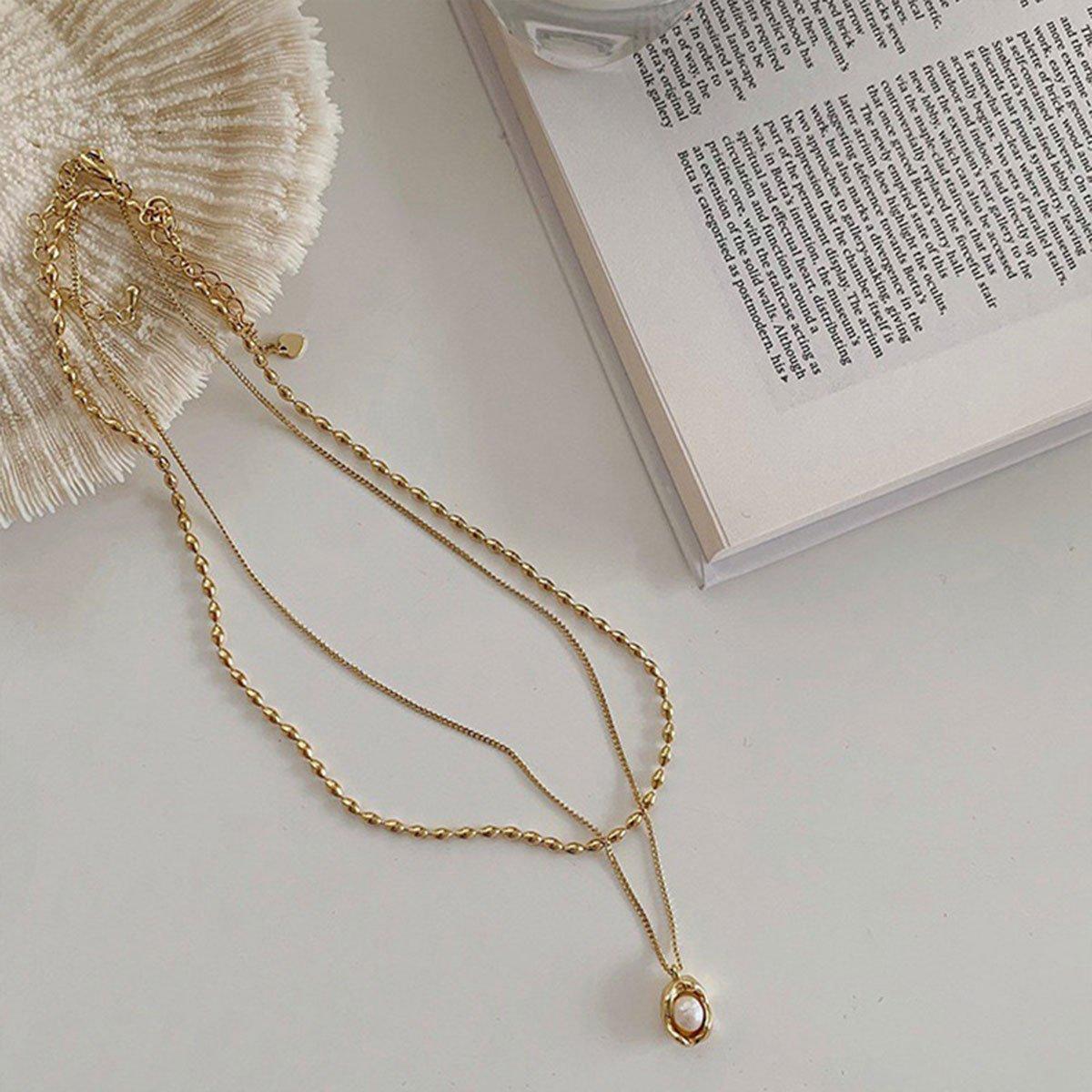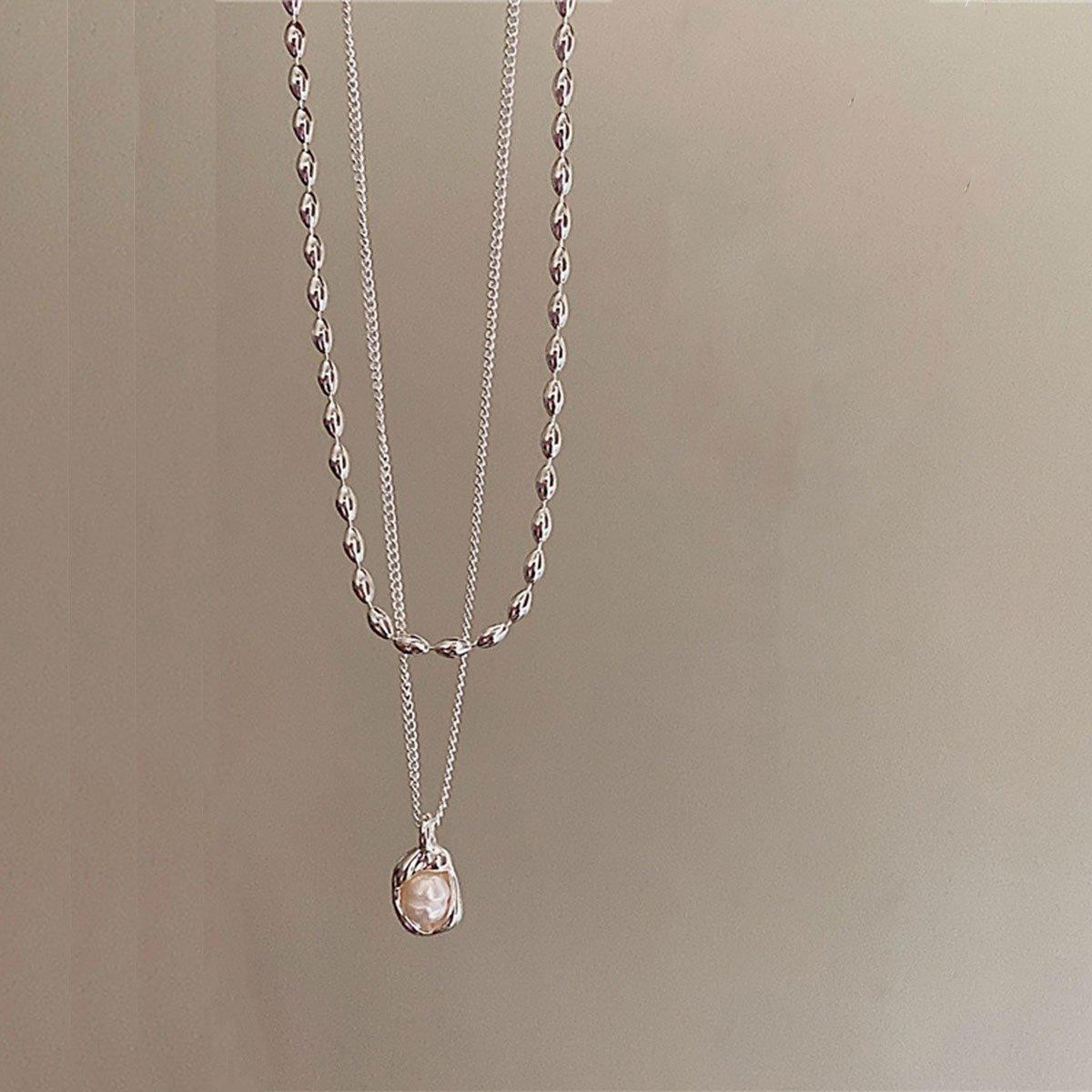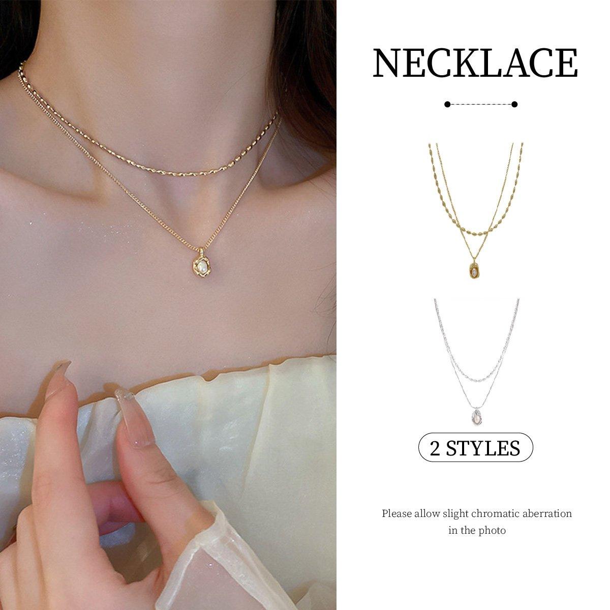 Love Butterfly Pearl Tassel Double Layer Necklace Elegant Jewelry Women Fashion
