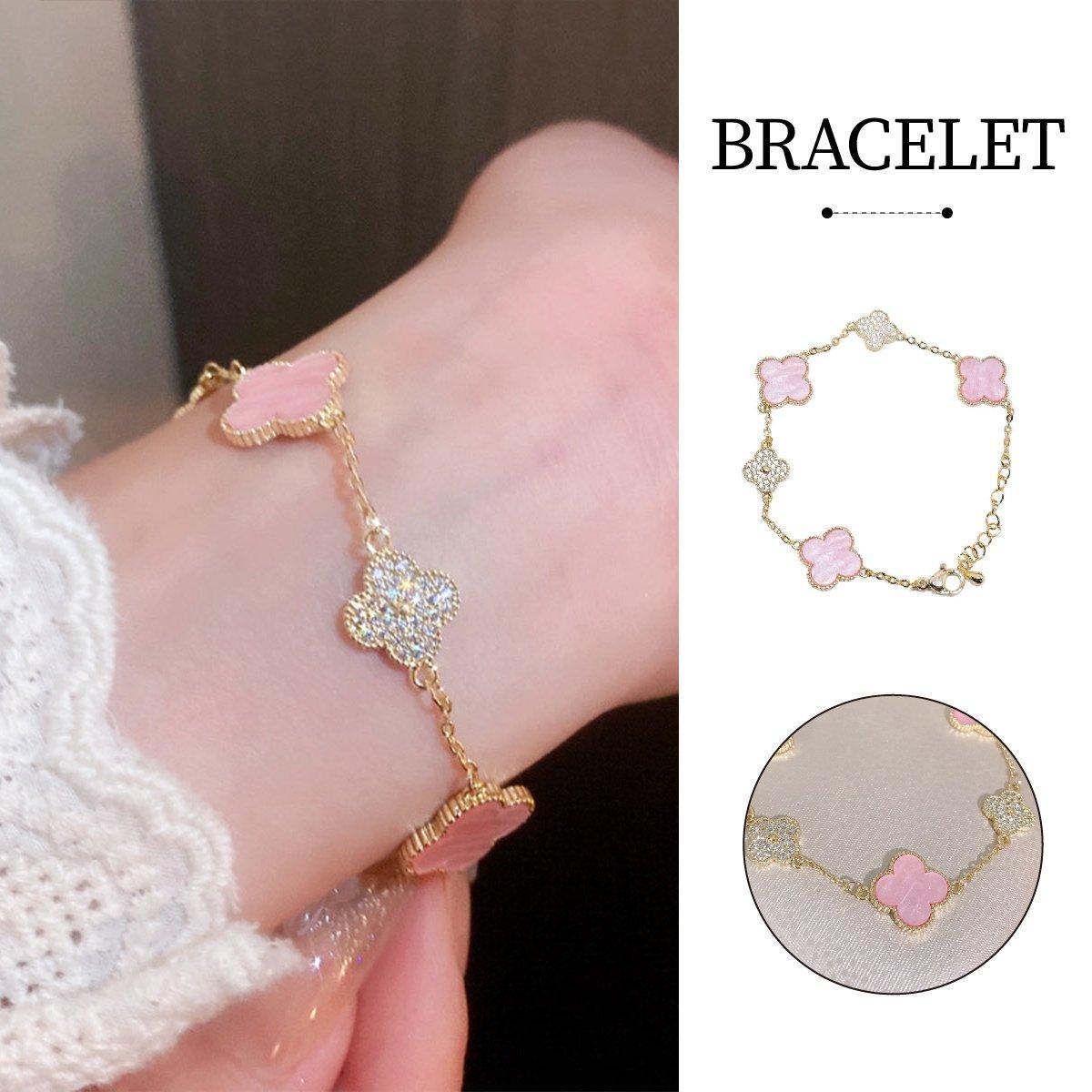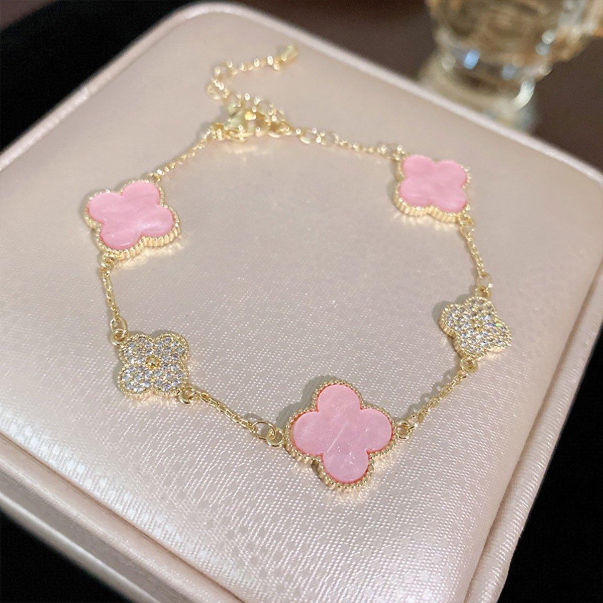 Luxury Pink Four-Leaf Clover Bracelet Elegant Fashion Jewellery Bracelet
