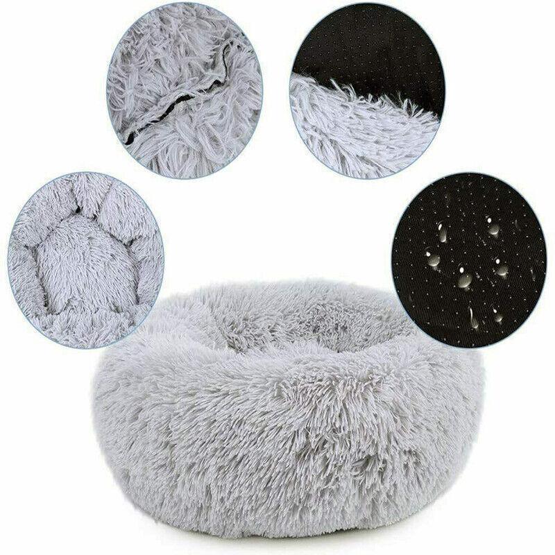 M-60CM Dog Cat Pet Calming Bed Washable ZIPPER Cover Warm Soft Plush Round