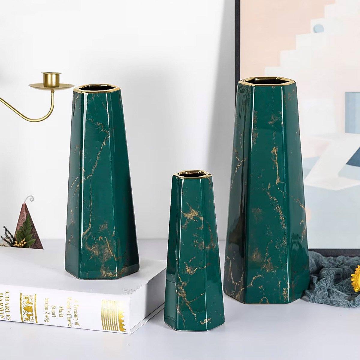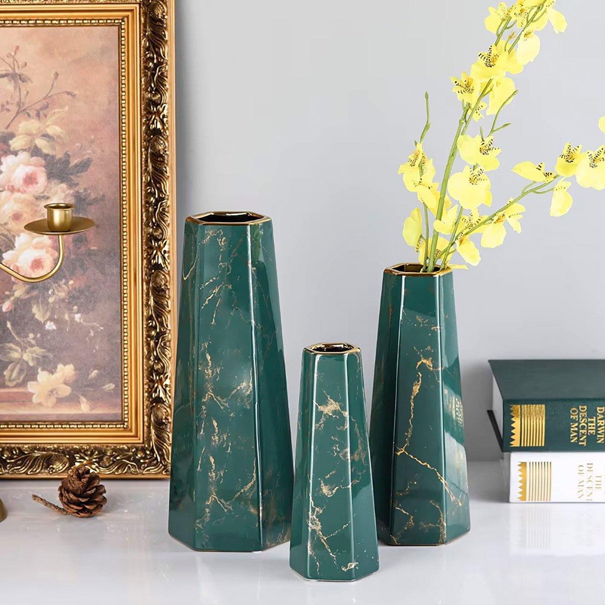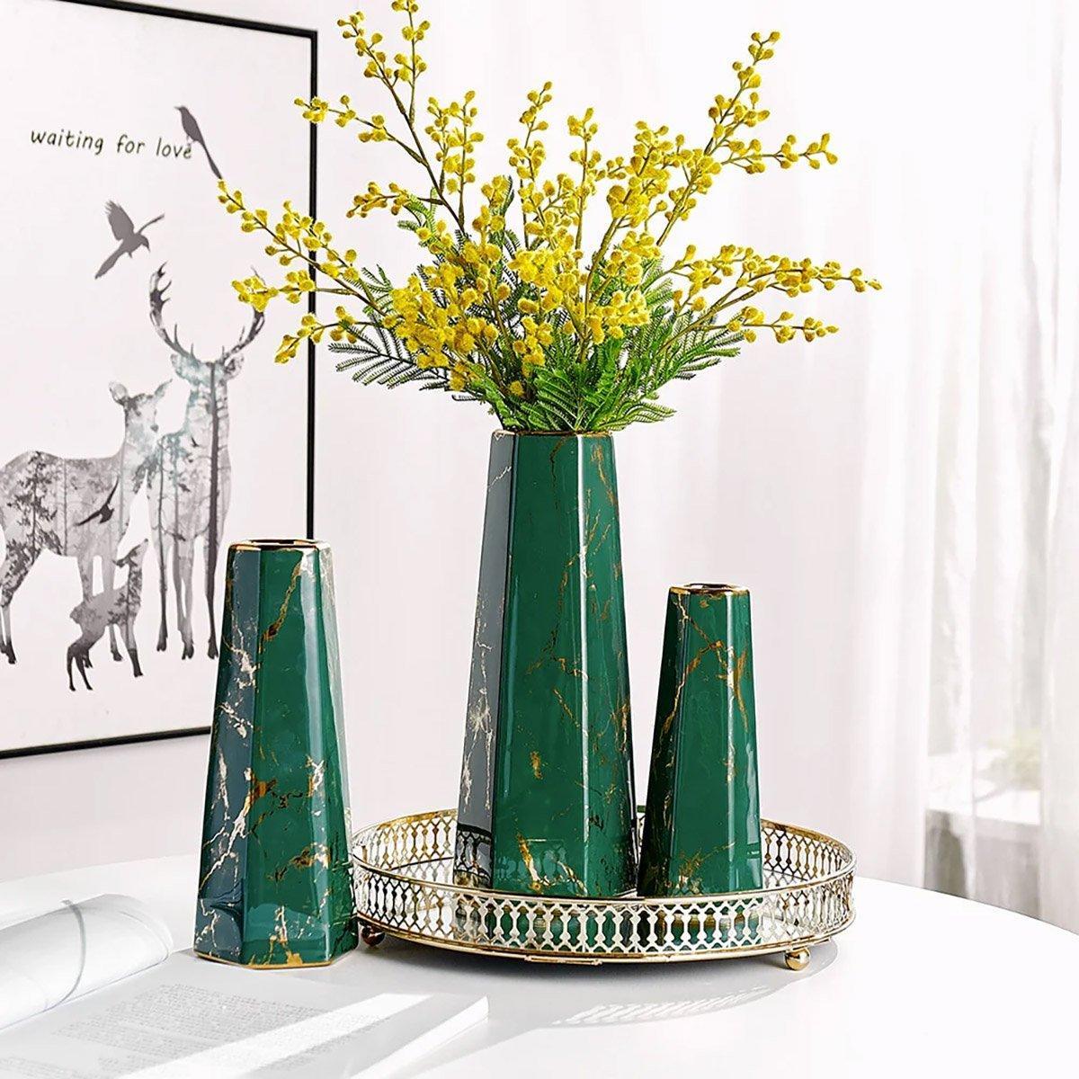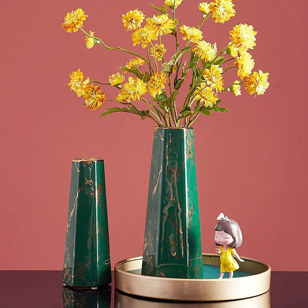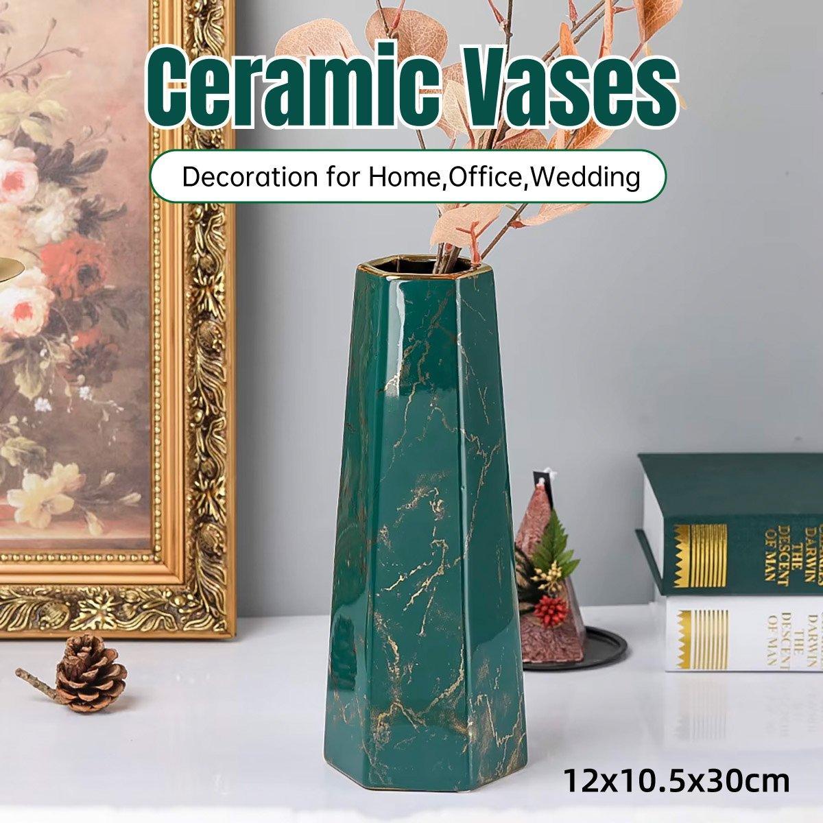 Marbled Ceramic Vase Simple Home Living Room Decor Flower Arrangement Piece