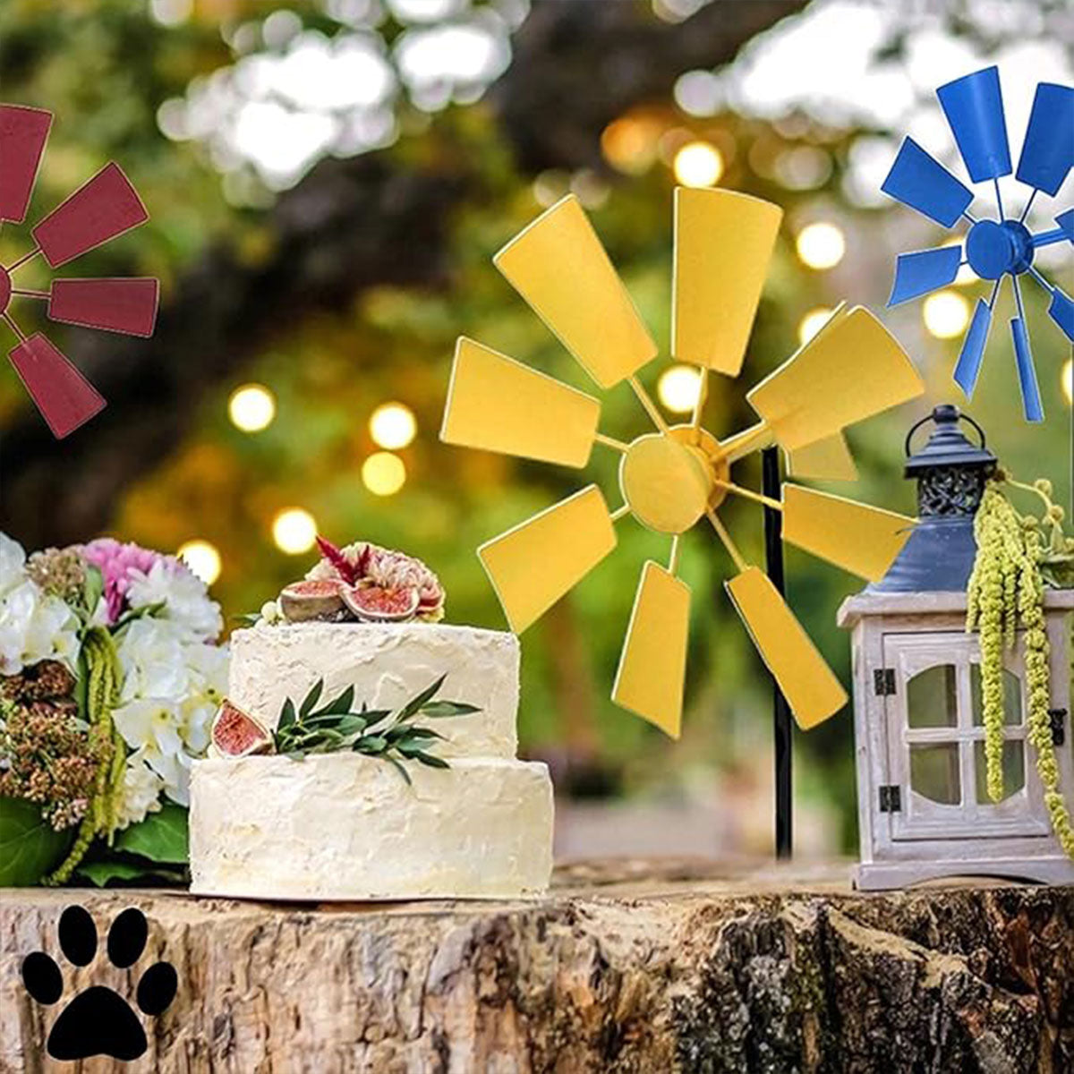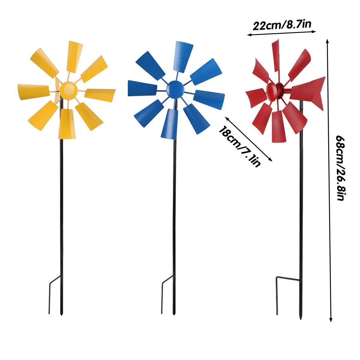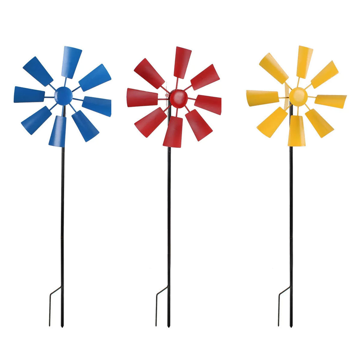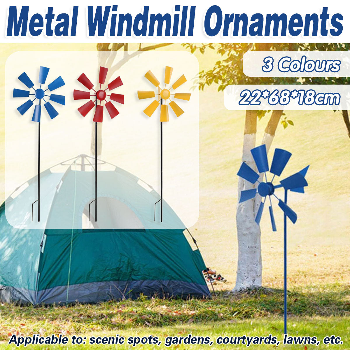 Metal Windmill Garden Decor Outdoor Yard Stake Ornament for Lawn Courtyard Park