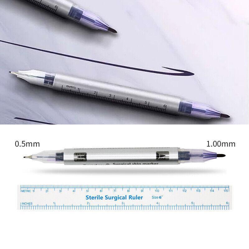 Microblading Tattoo Eyebrow Surgical Skin Marker Pen Ruler Tattoo Piercing 2Pcs