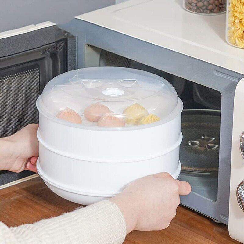 Microwave Steamer 2 Tier Double Layer Cooking Meals Vegetables Kitchen Appliance