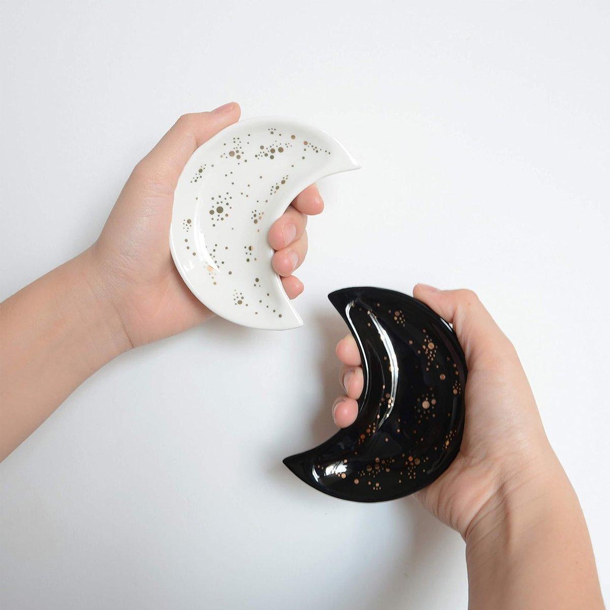 Moon Shaped Decorative Plate Fruit Tray Jewelry Storage Rack Dip Saucer for Home