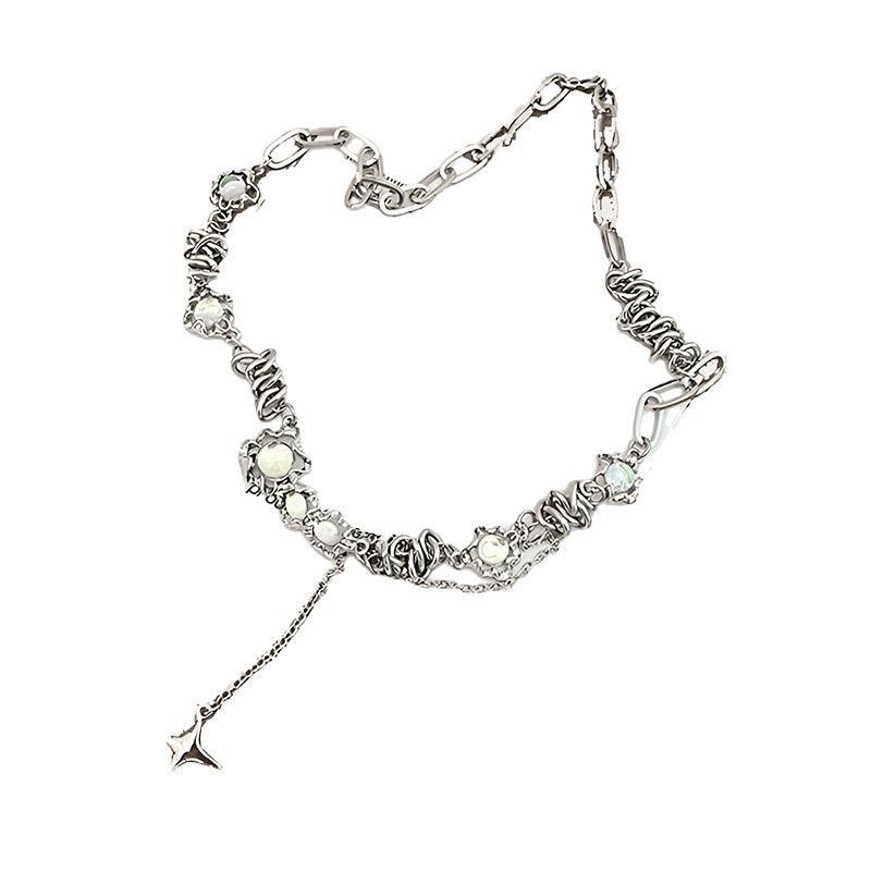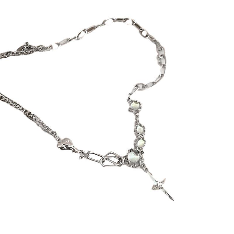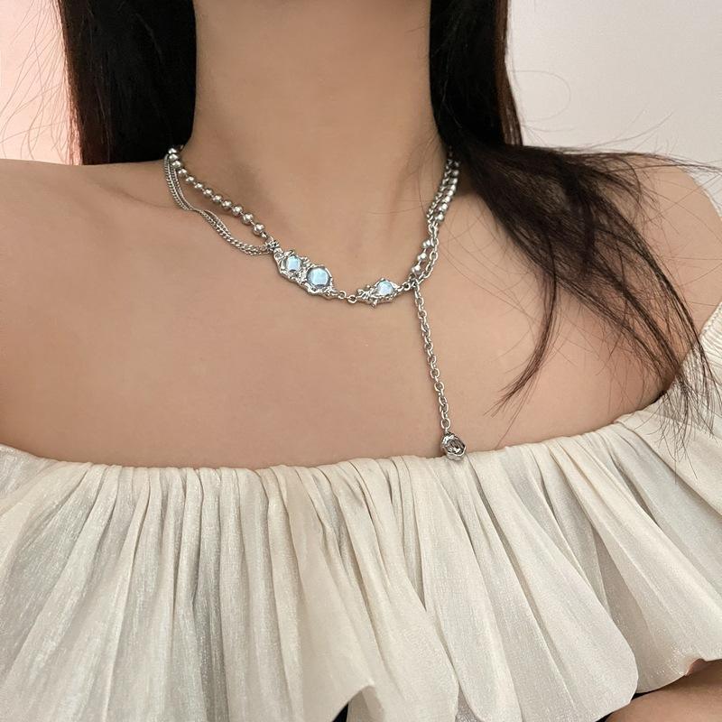 Moonstone Pendant Necklace Cool Tone Clavicle Chain for Women Girls Jewelry Gift