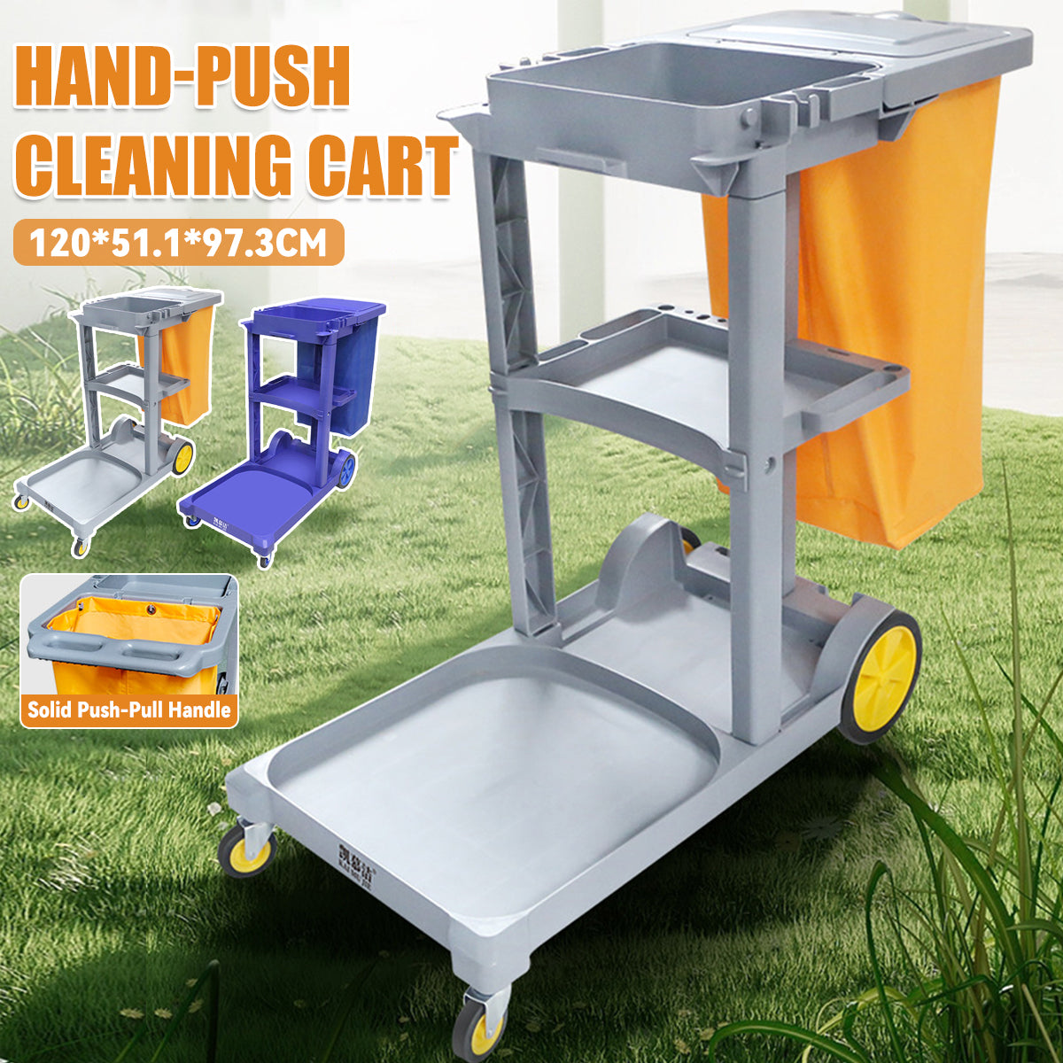 Multi-Functional Cleaning Trolley Cart Hand Push Housekeeping Utility Storage