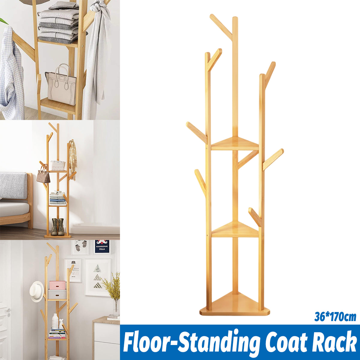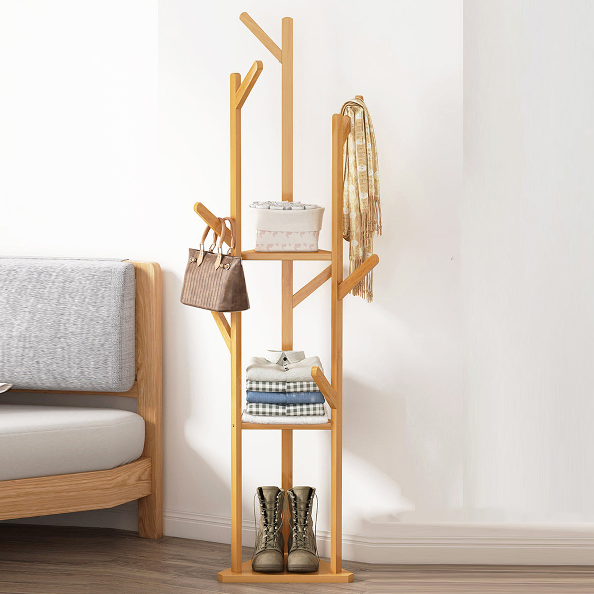 Multi-Functional Floor-Standing Coat Rack With Hooks Space Saving Durable