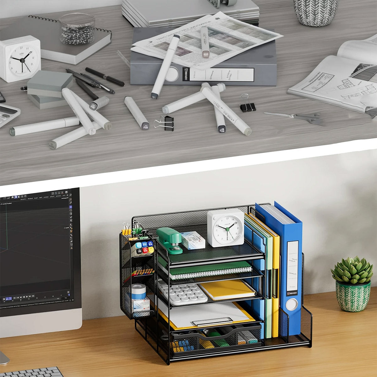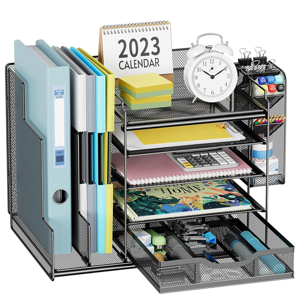 Multi Layer Desktop File Rack Storage Organizer Black Plastic for Office Home