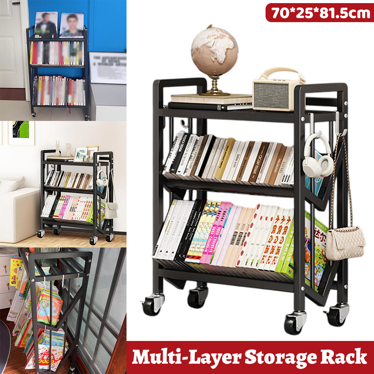 Multi layer Steel Storage Rack Rolling Mobile Shelf 3-Tier for Home Organization
