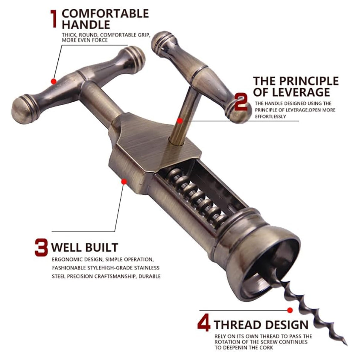 Multifunctional Manual Wine Bottle Opener Premium Grade Aluminum Alloy Durable