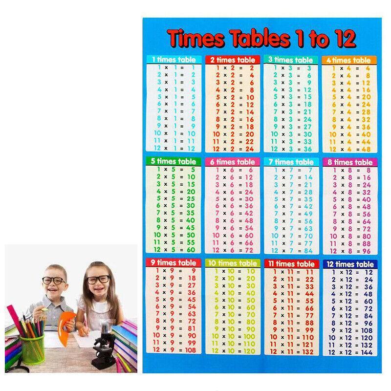 Multiplication Educational Time Tables Maths Wall Chart Poster for Learning