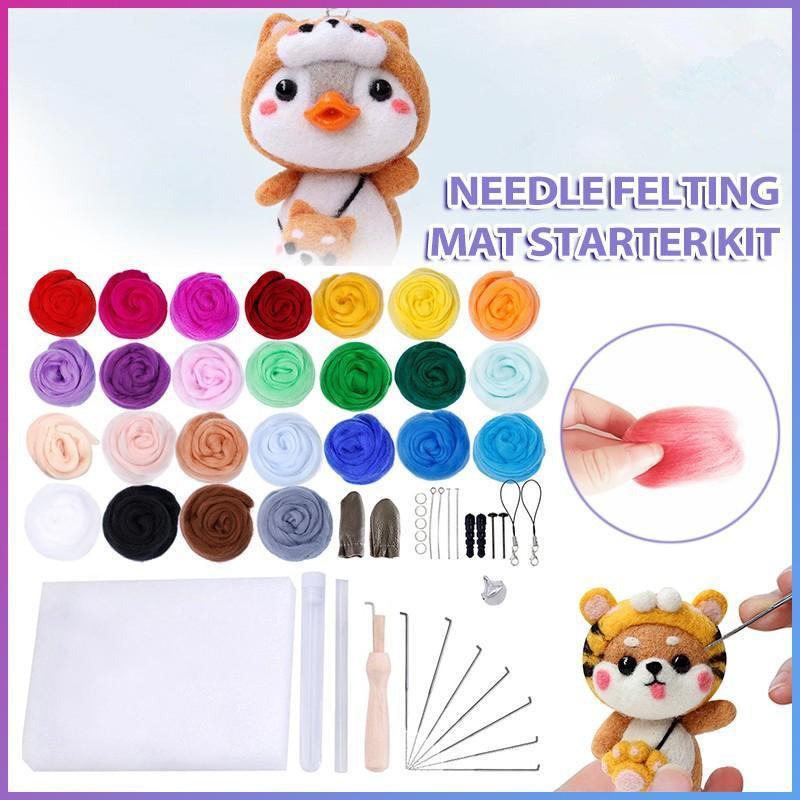Needle Felting Mat Starter Kit 25 Set Colour Wool Felt Needles Tool DIY Gift