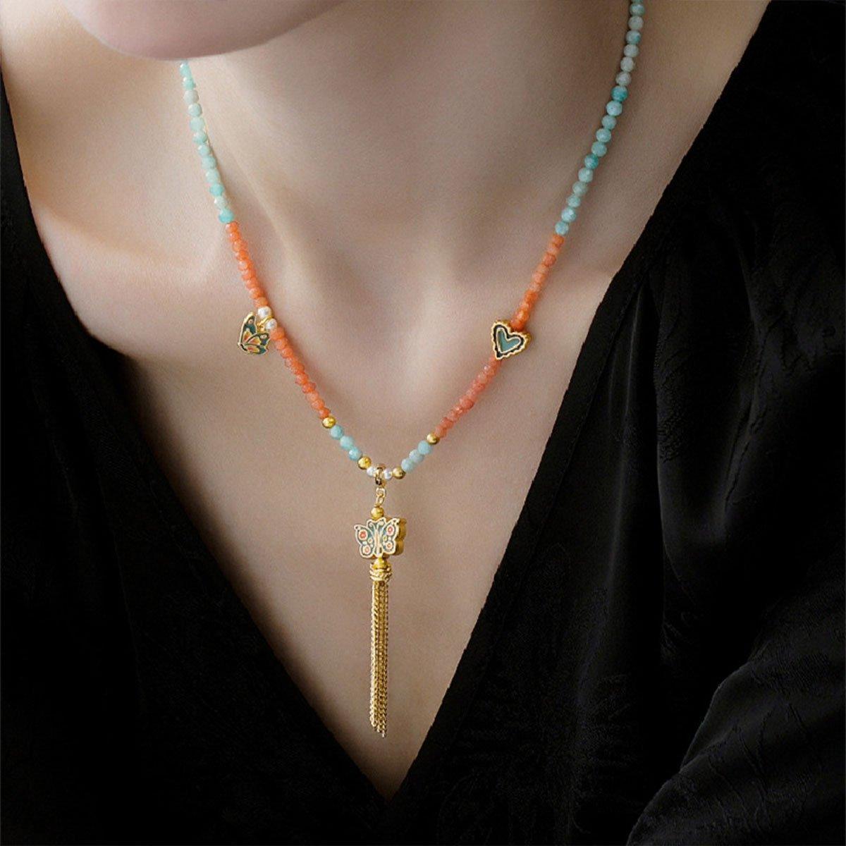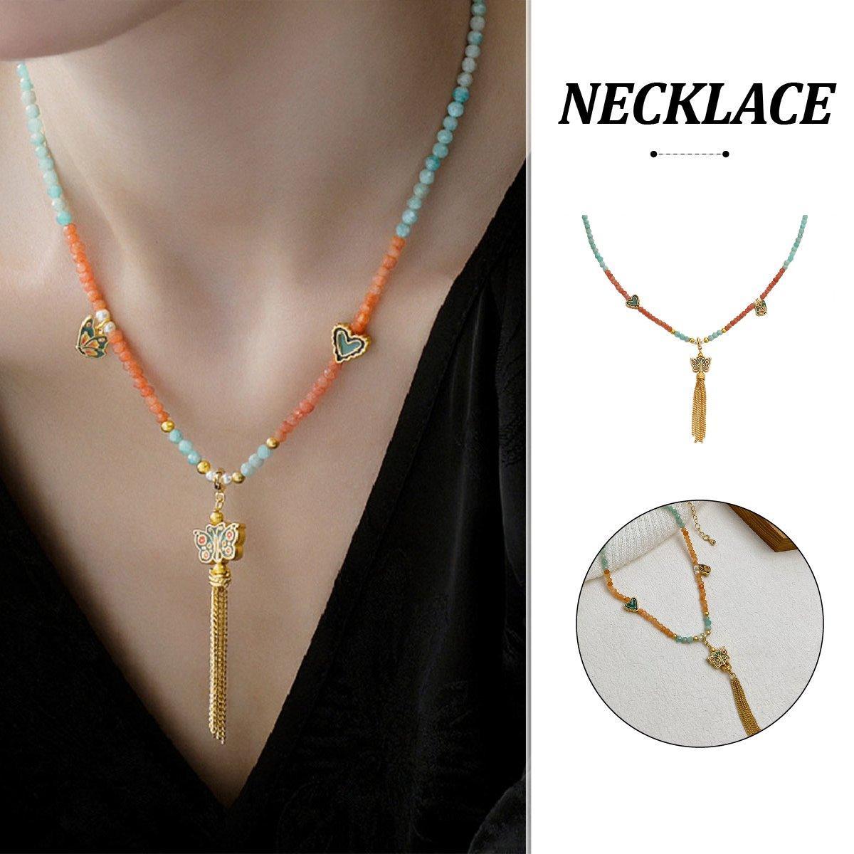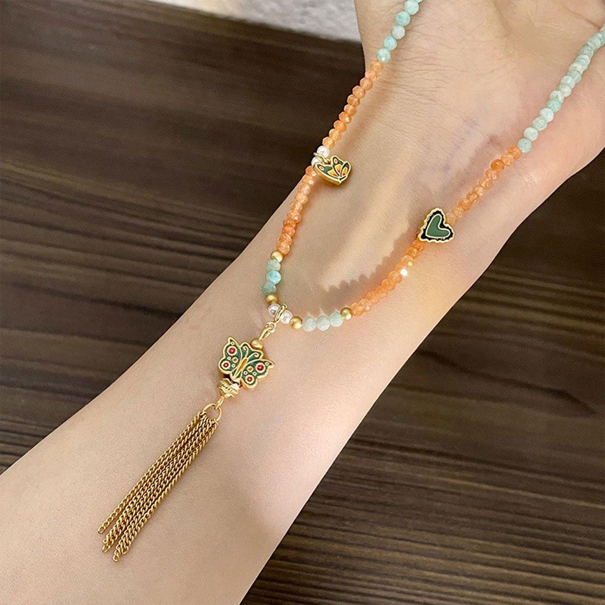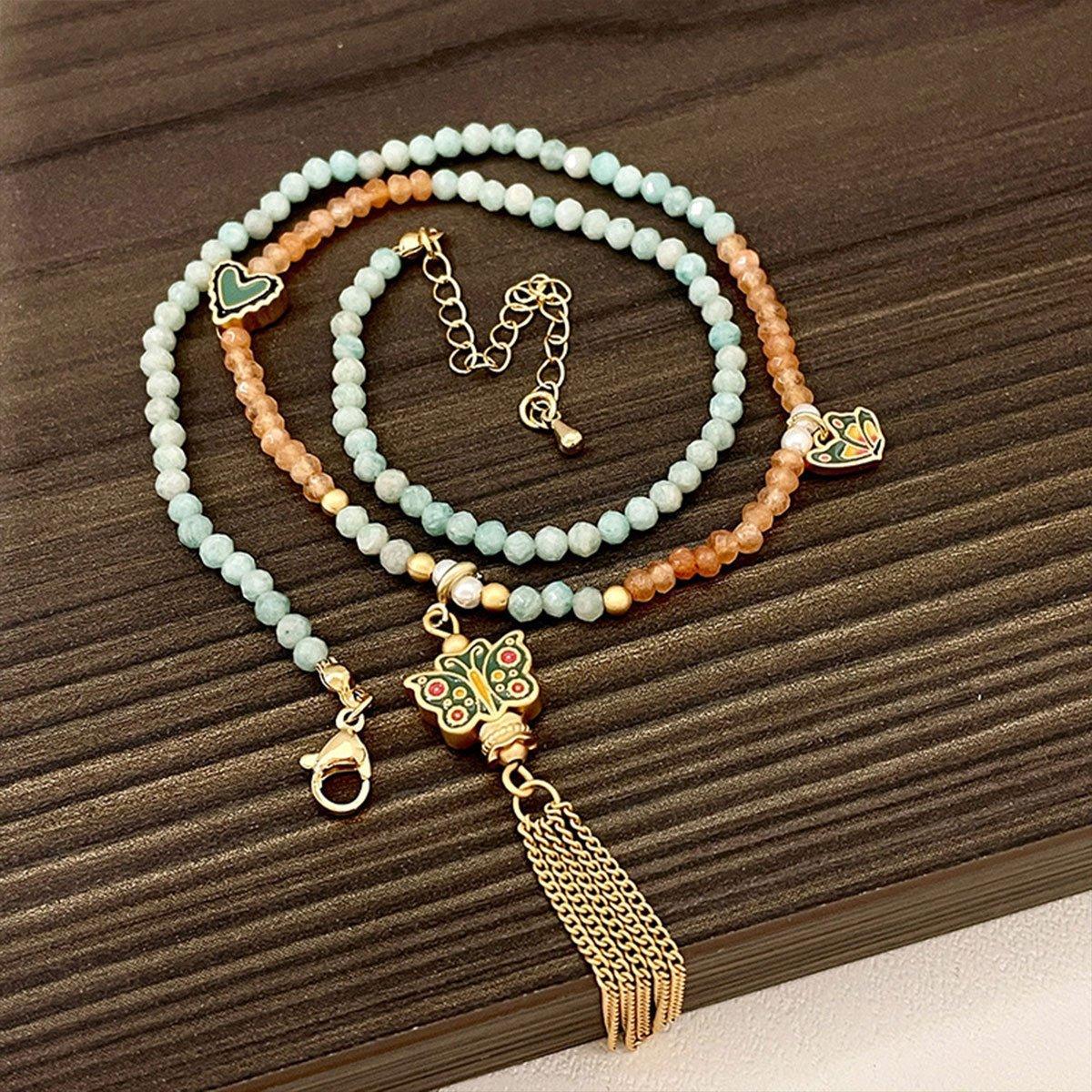 New Chinese Butterfly Pendant Beaded Necklace with Fringe Exquisite Fashion