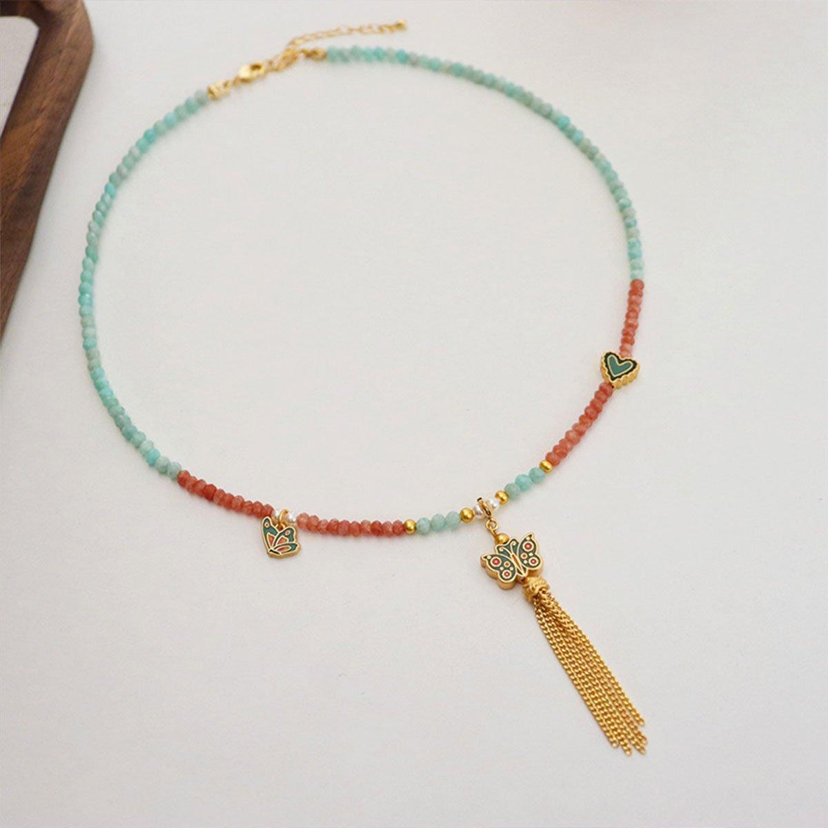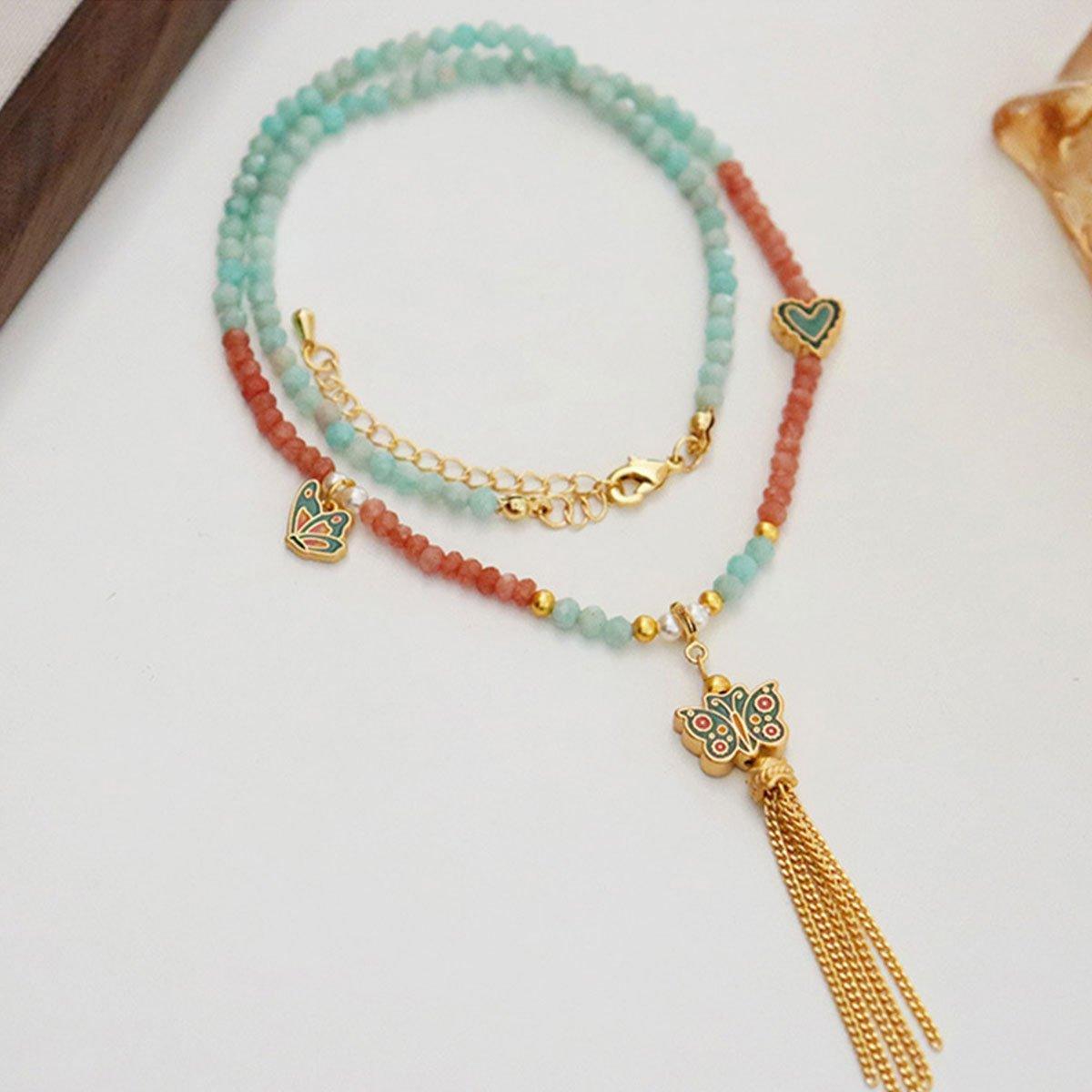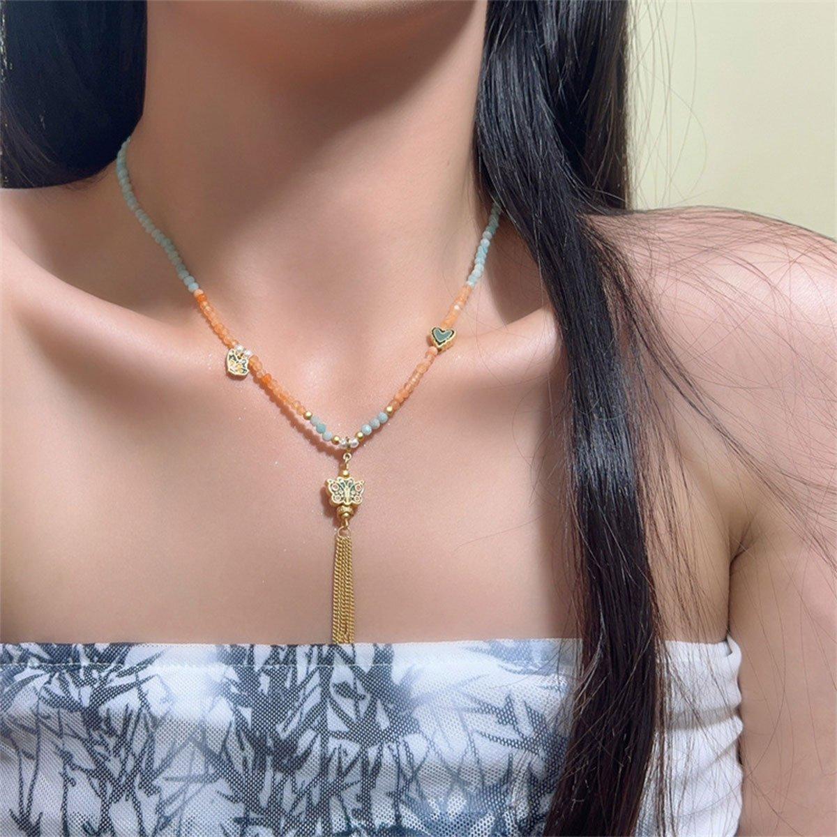 New Chinese Butterfly Pendant Beaded Necklace with Fringe Exquisite Fashion