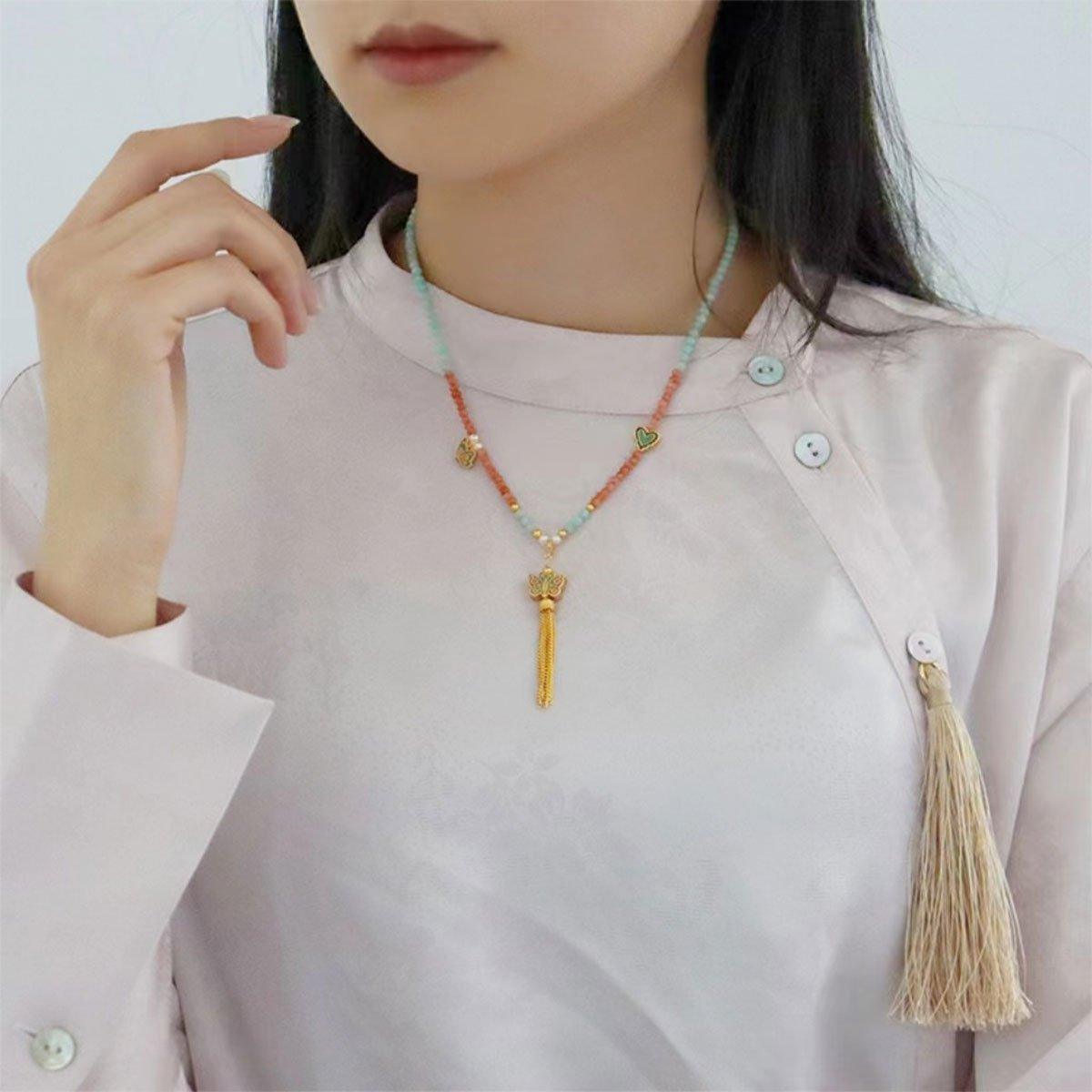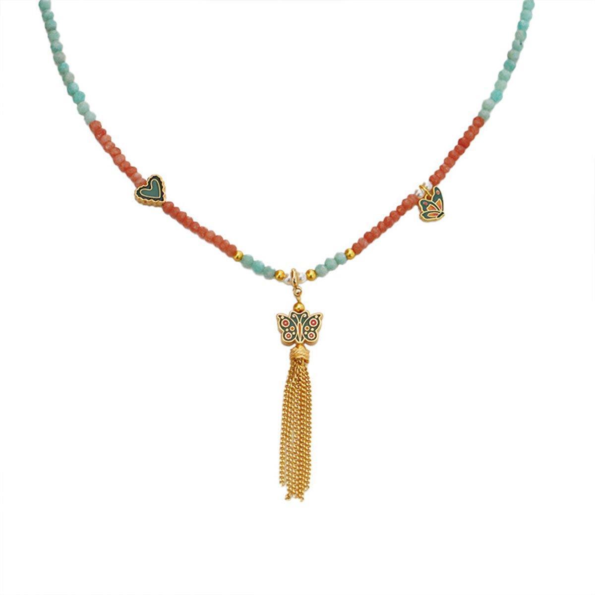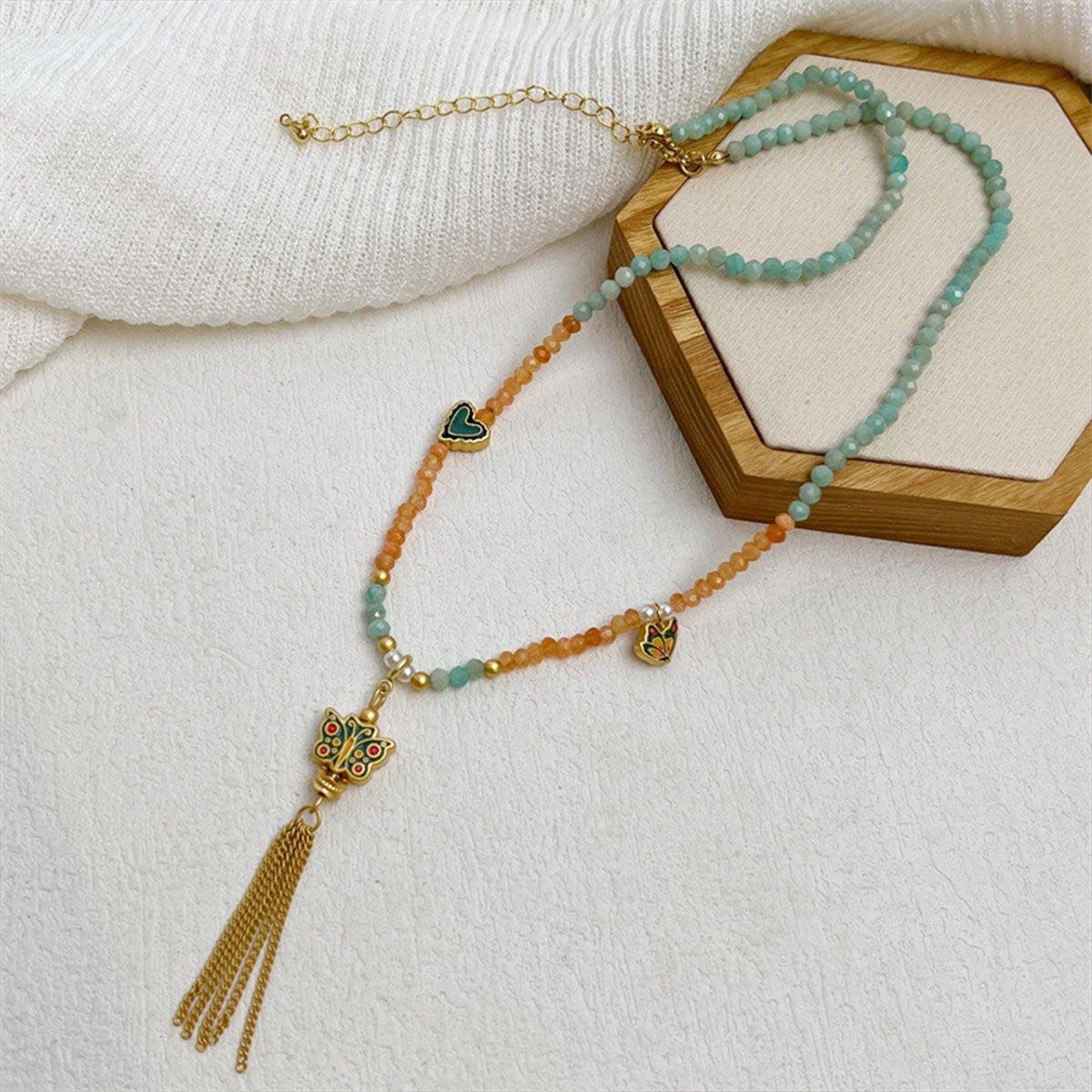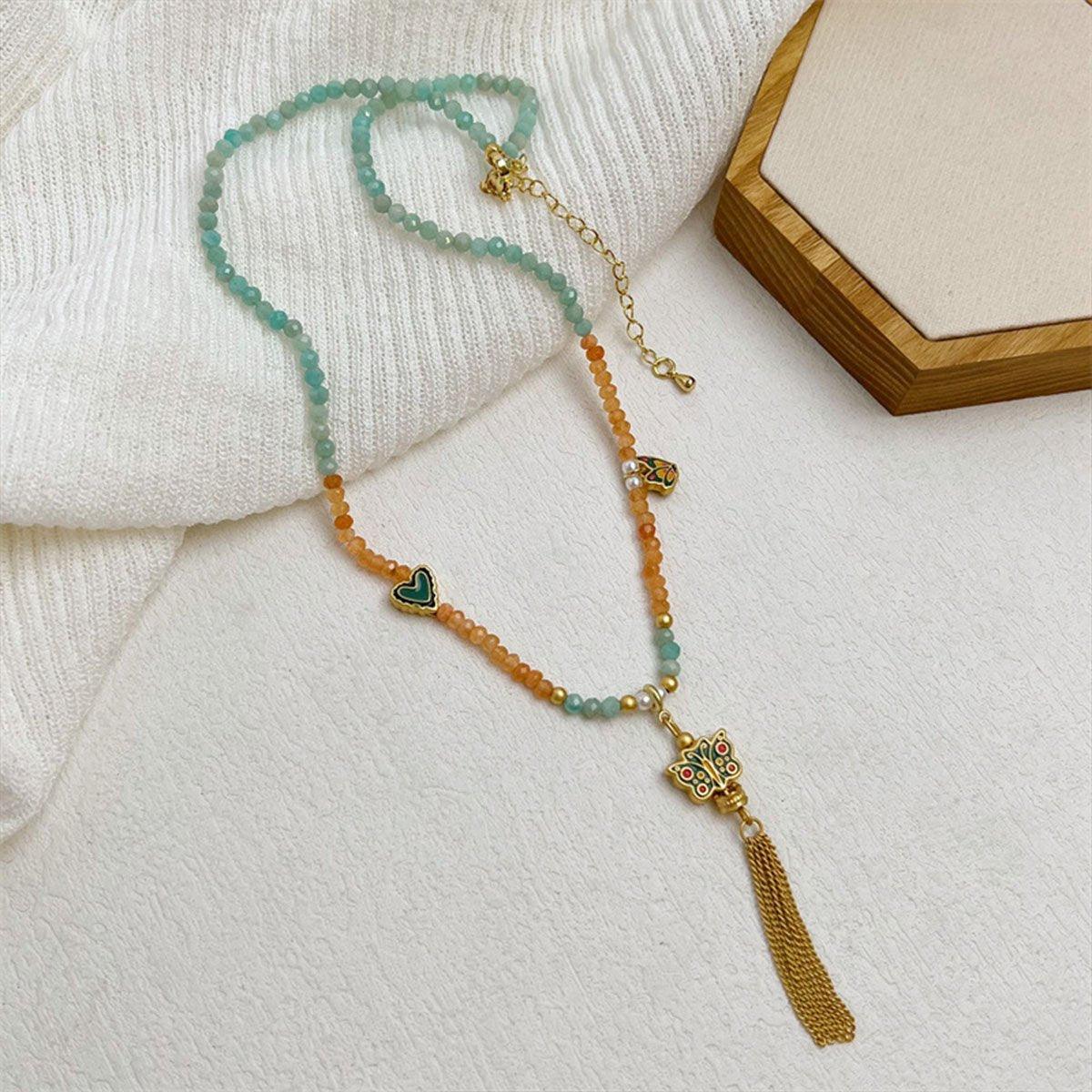 New Chinese Butterfly Pendant Beaded Necklace with Fringe Exquisite Fashion