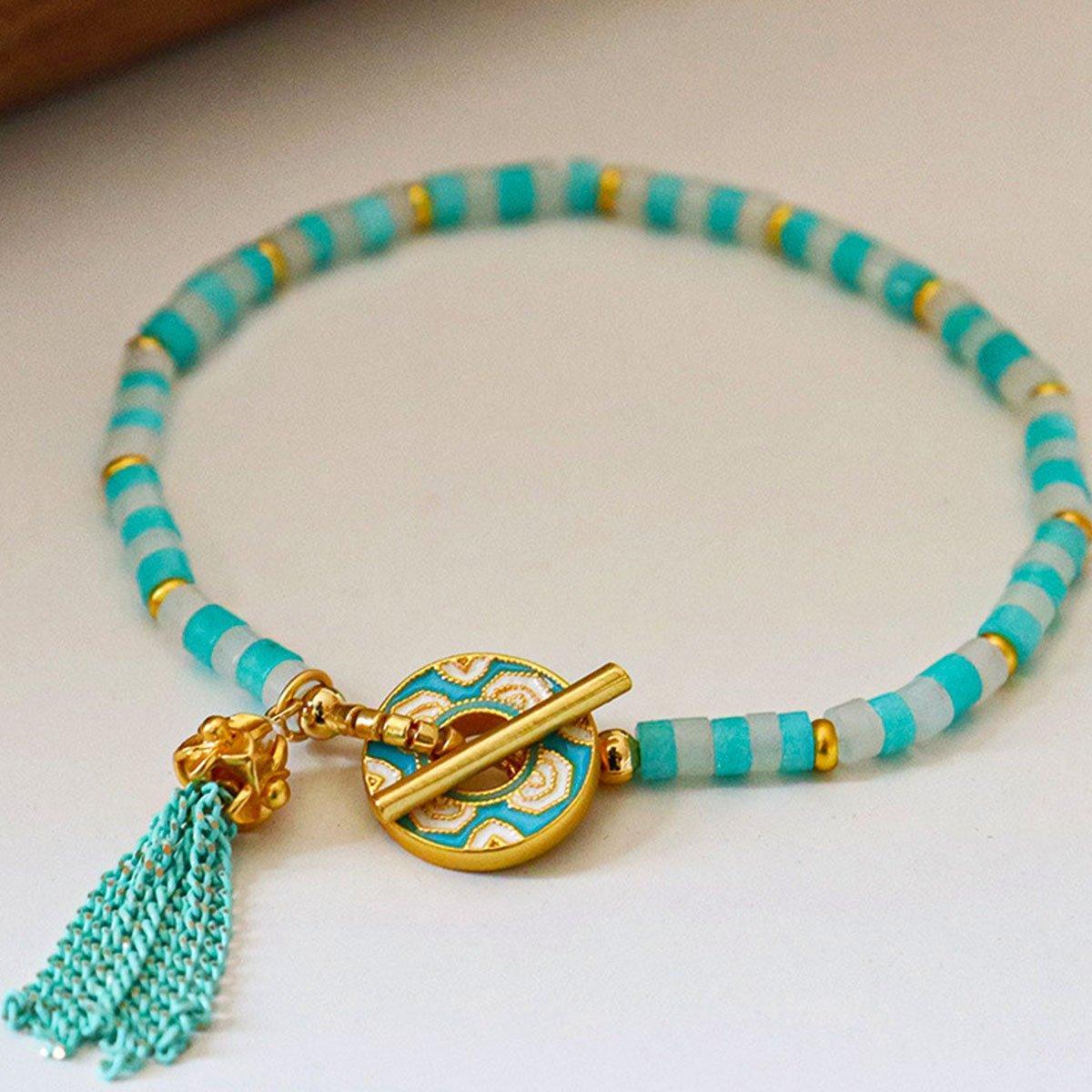 New Chinese Fashion Blue Beaded Bracelet Fringe Simple Elegant Jewelry