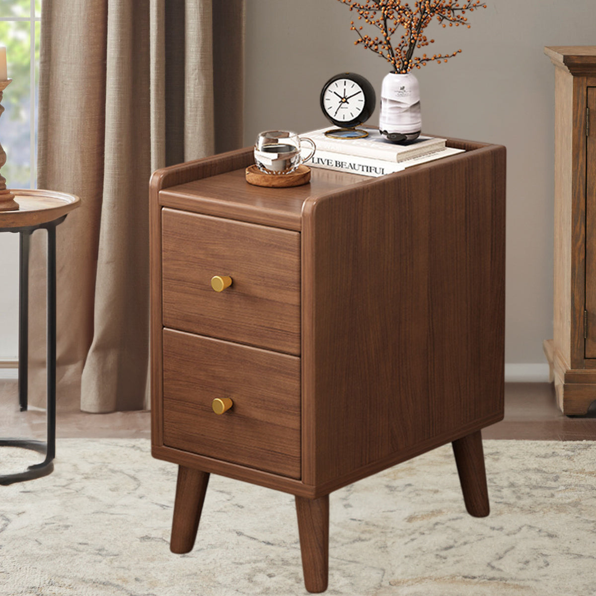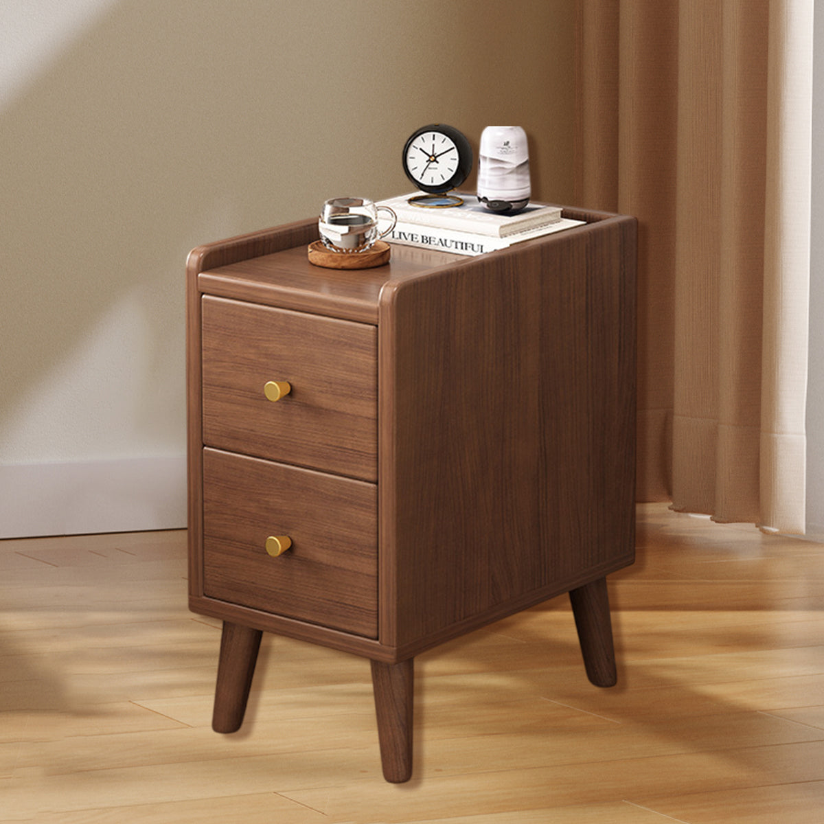New Chinese Style Multi Functional Bedside Table Solid Wood Storage Drawer