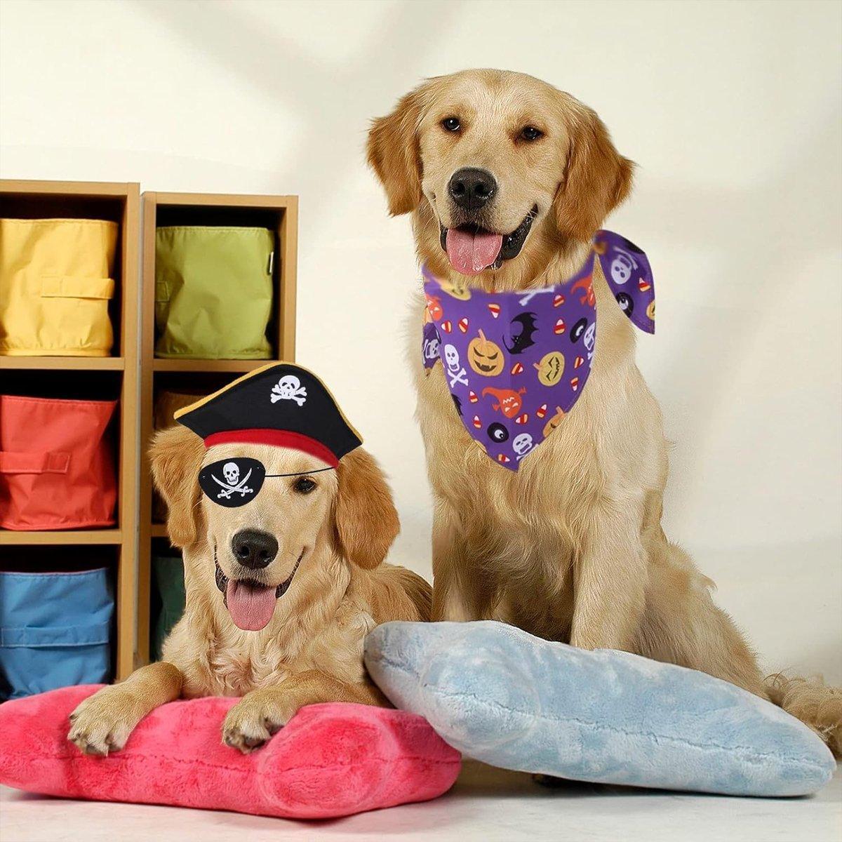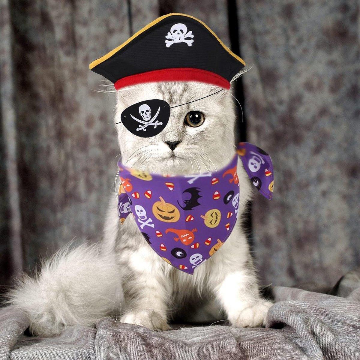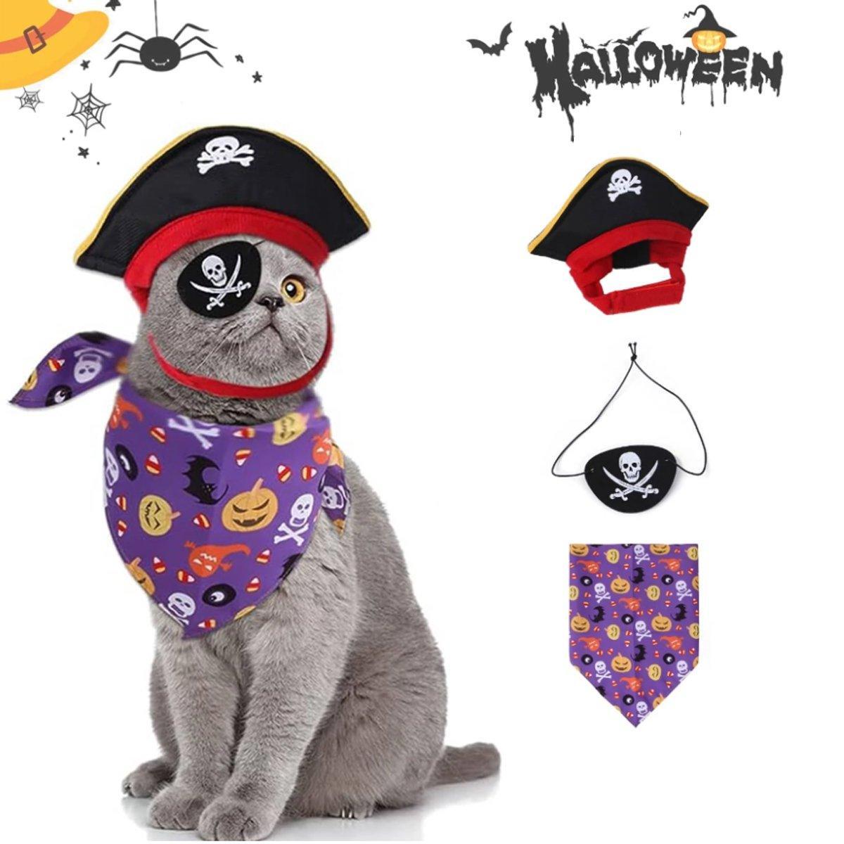 Halloween Pirate Hat Skeleton Cat Pumpkin Triangle Towel Suit for Pets