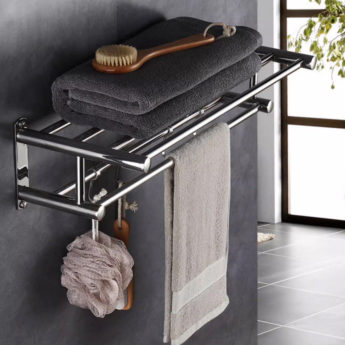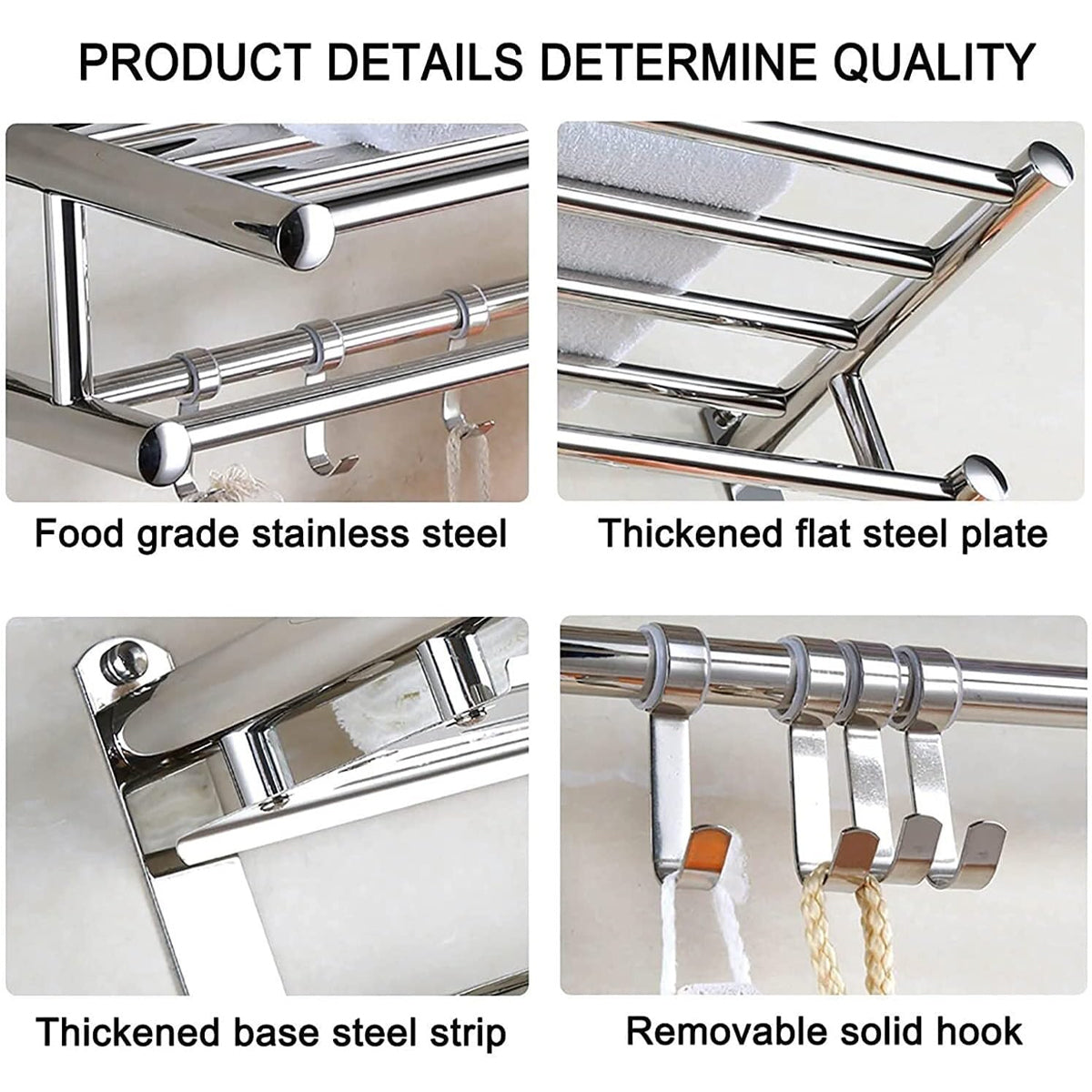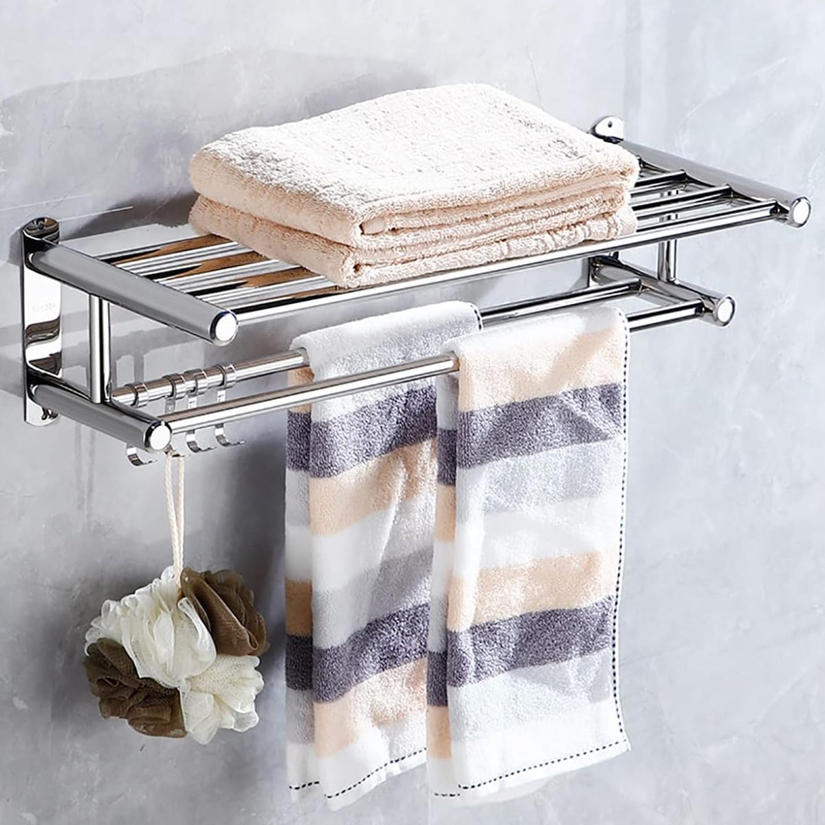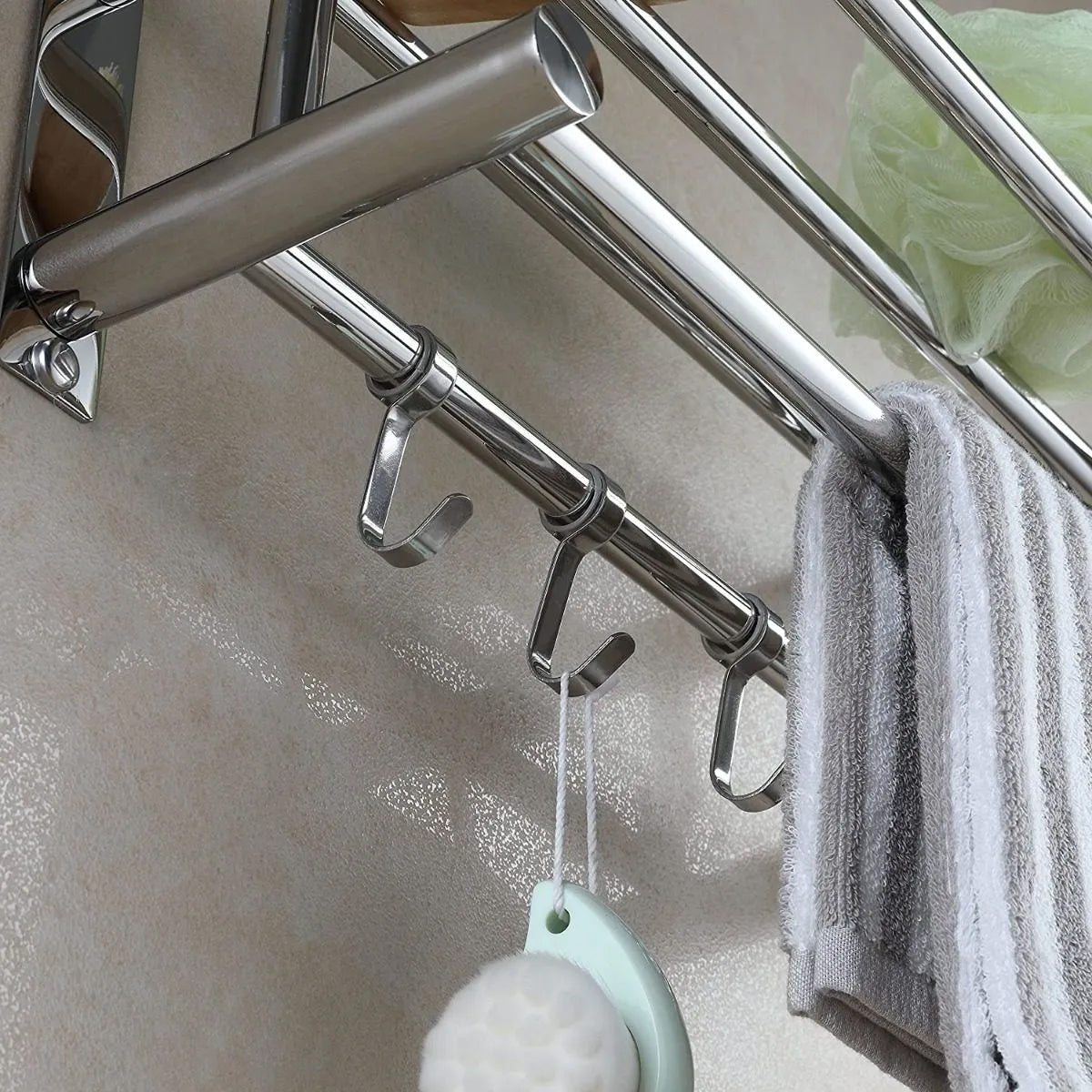 No Drill Stainless Steel Towel Rack Bathroom Storage Shelf Waterproof Rustproof