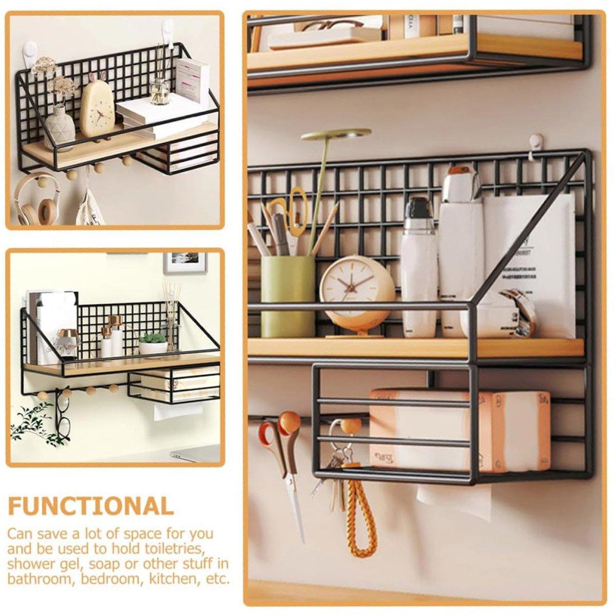 No-Punch Wall Mounted Iron Storage Rack Hanging Shelf for Home Organisation