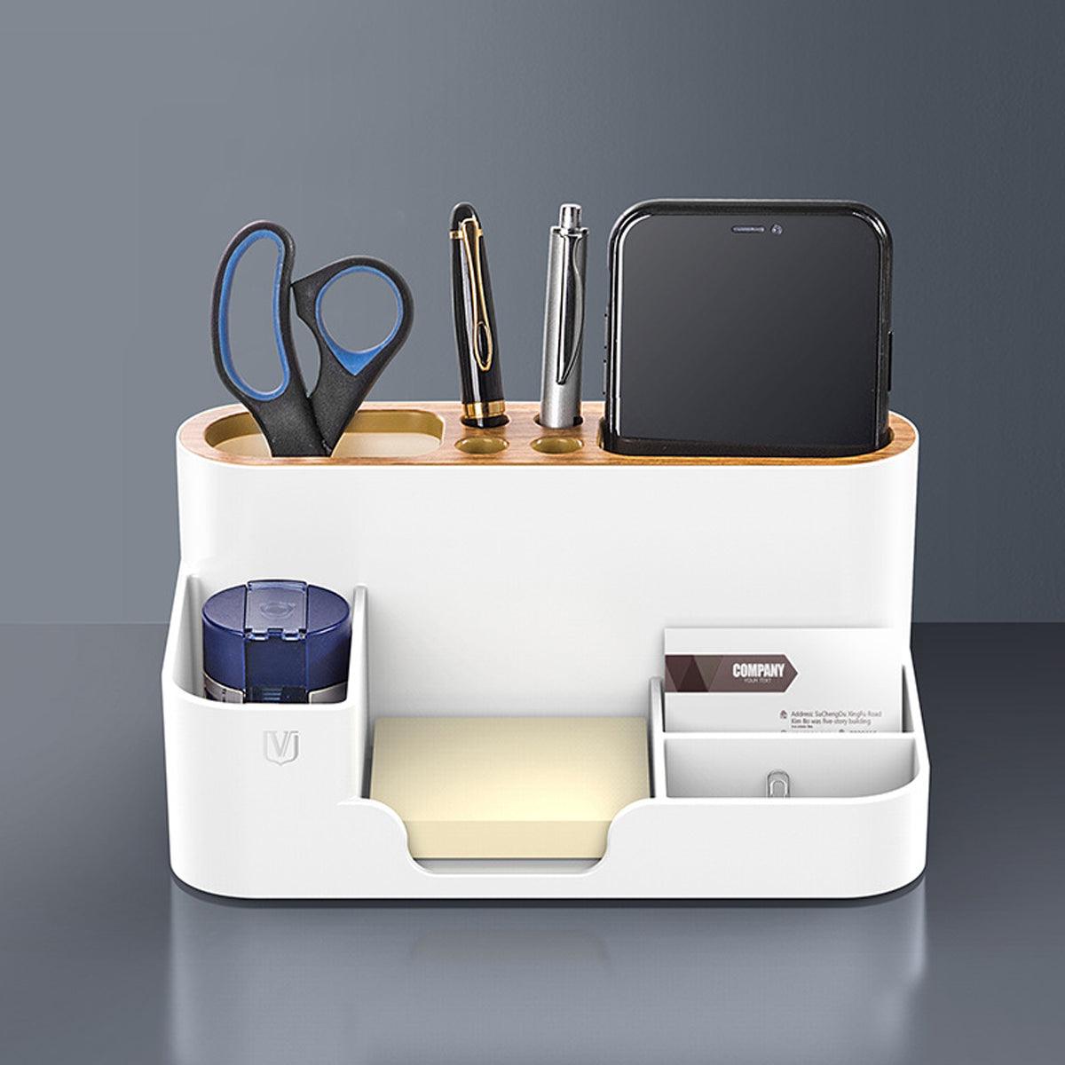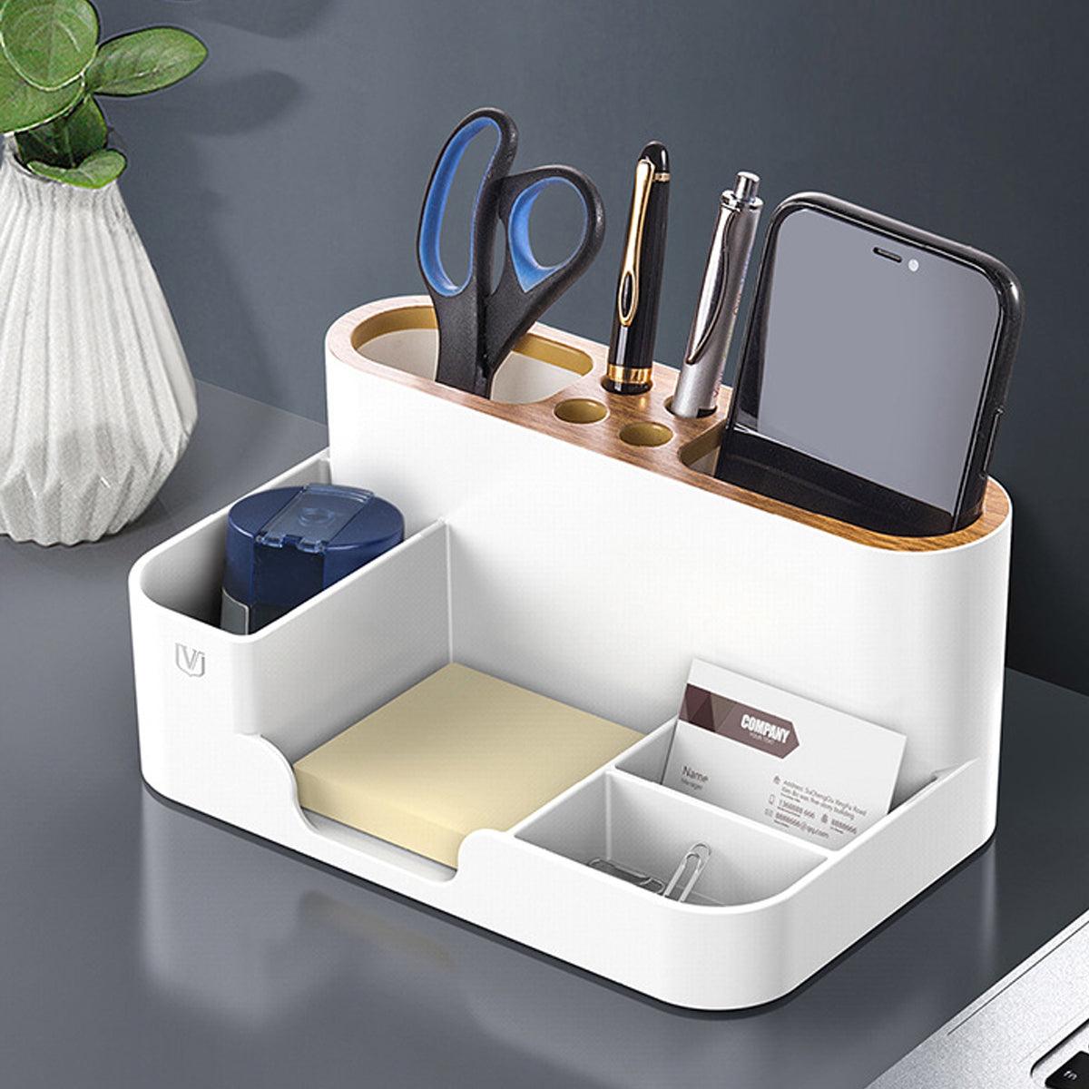 Office Organizer Pen Holder with Slots for Pens Phone Cards Remote Sticky Notes