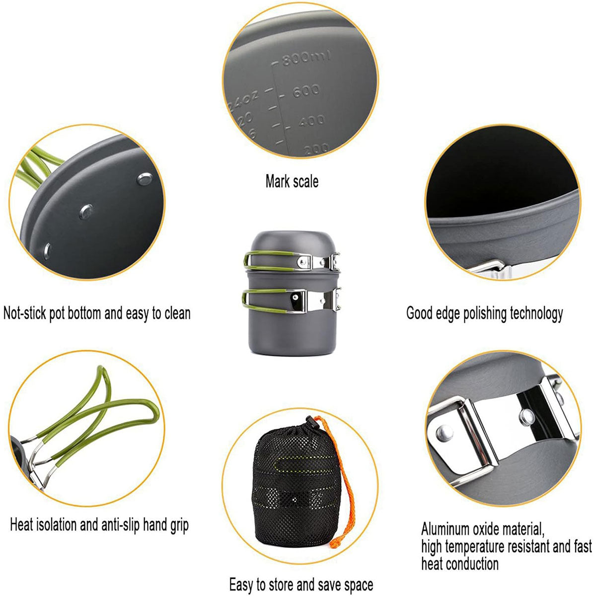 Outdoor Cookware Set for Hiking Picnic Backpacking Portable Pot Tableware Kit