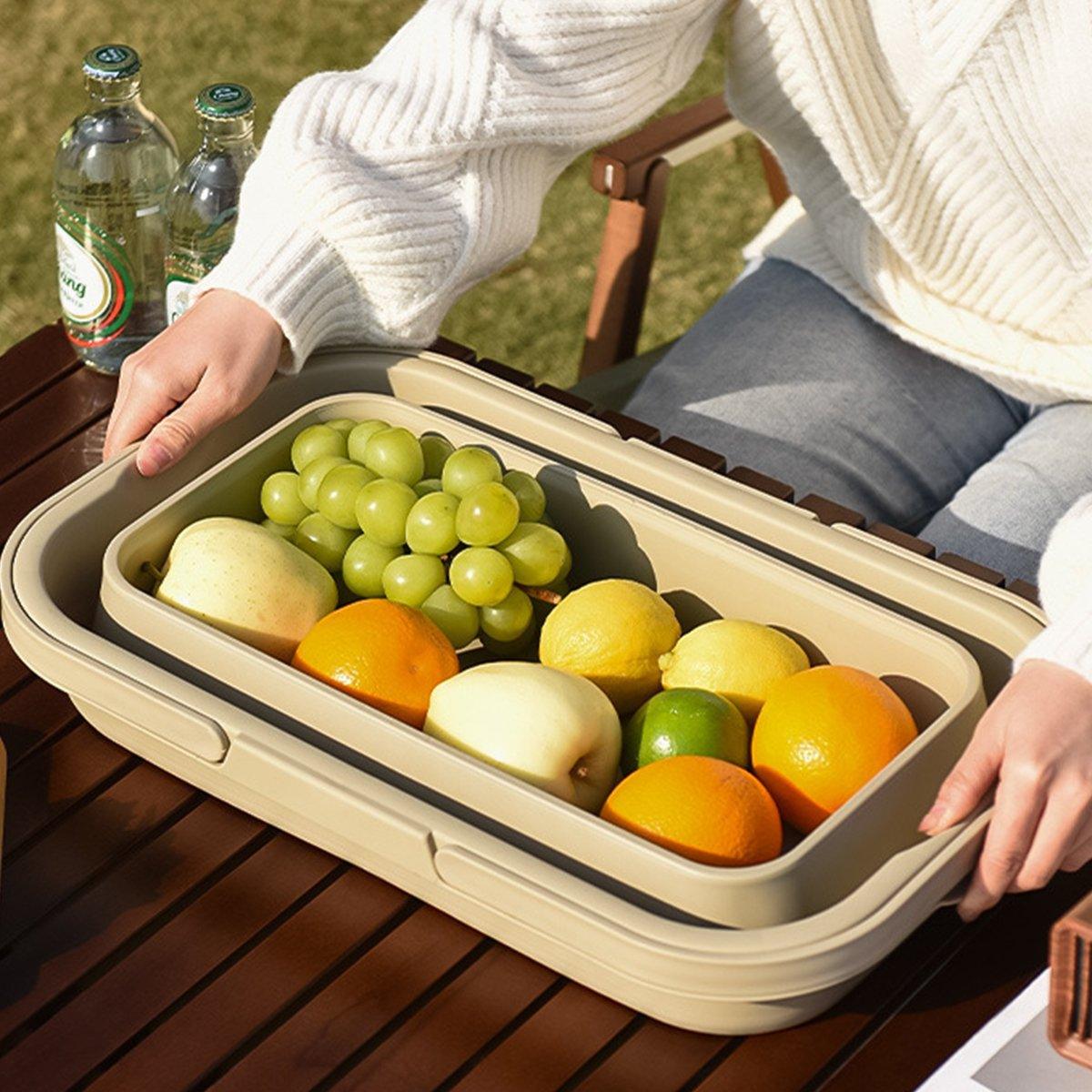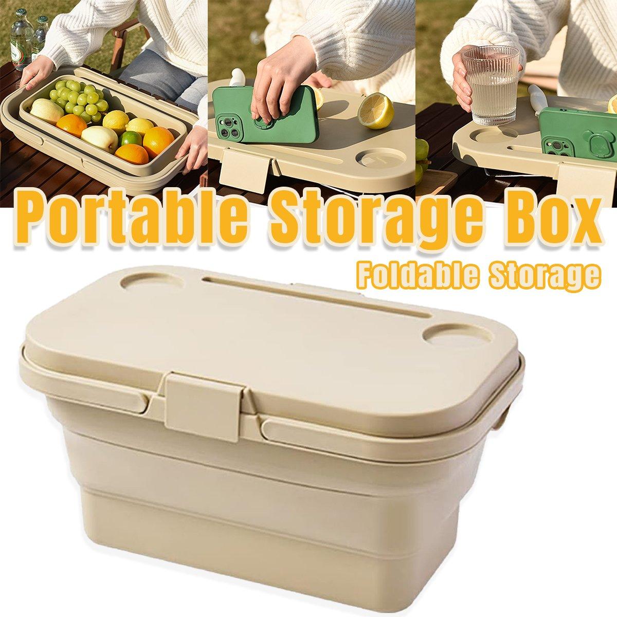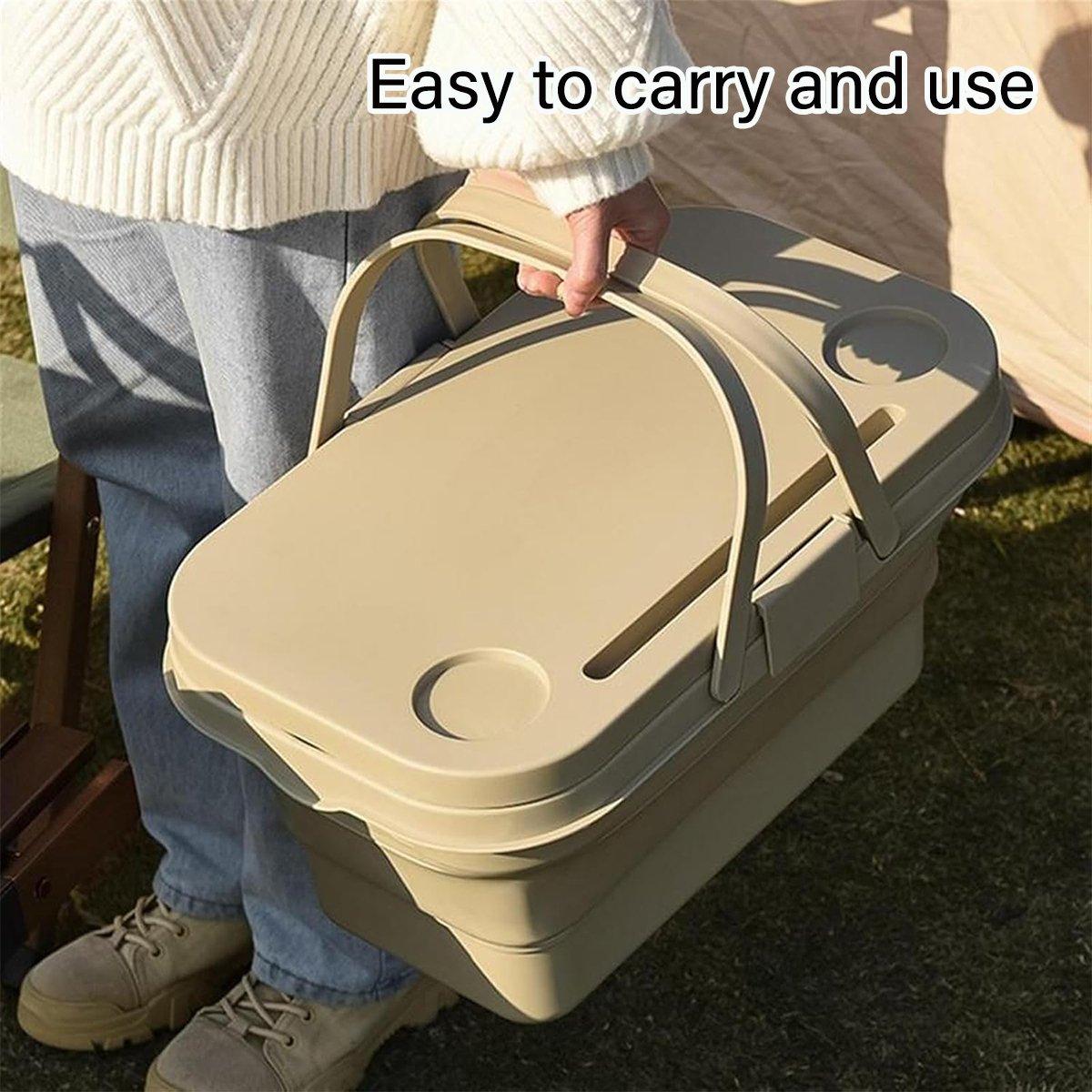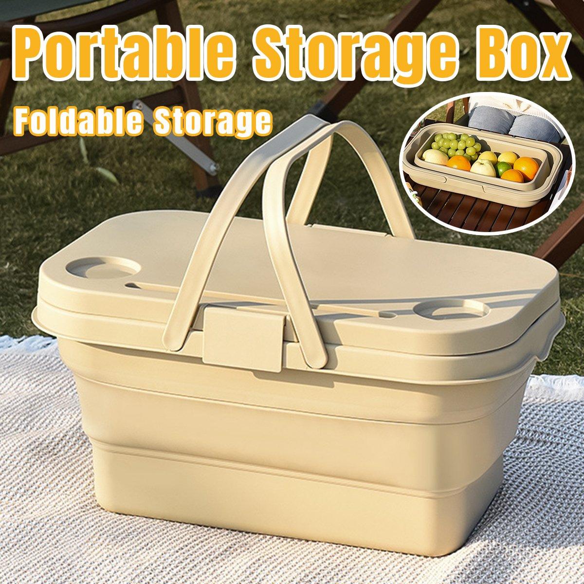 Outdoor Picnic Basket Camping Portable Handheld Storage Basket with Lid Foldable
