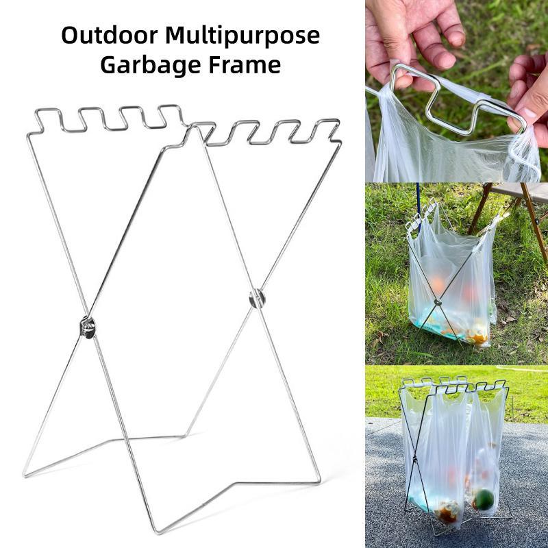 Outdoor Portable Folding Trash Bag Holder Rack for Home Kitchen and Camping Use