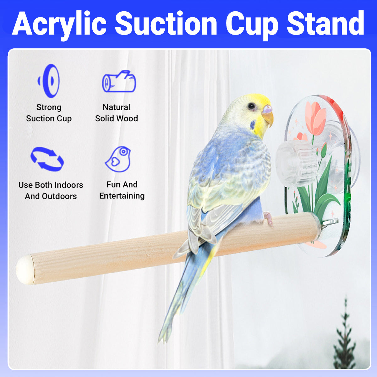 Parrot Acrylic Suction Cup Perch Pet Toy Non Slip for Small Medium Parrots
