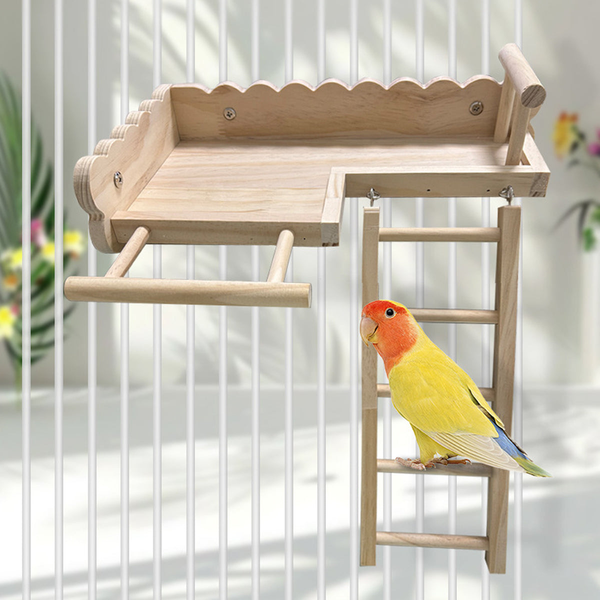Parrot Wooden Climbing Ladder Platform Bed Stand Toy Bird Cage Resting Training