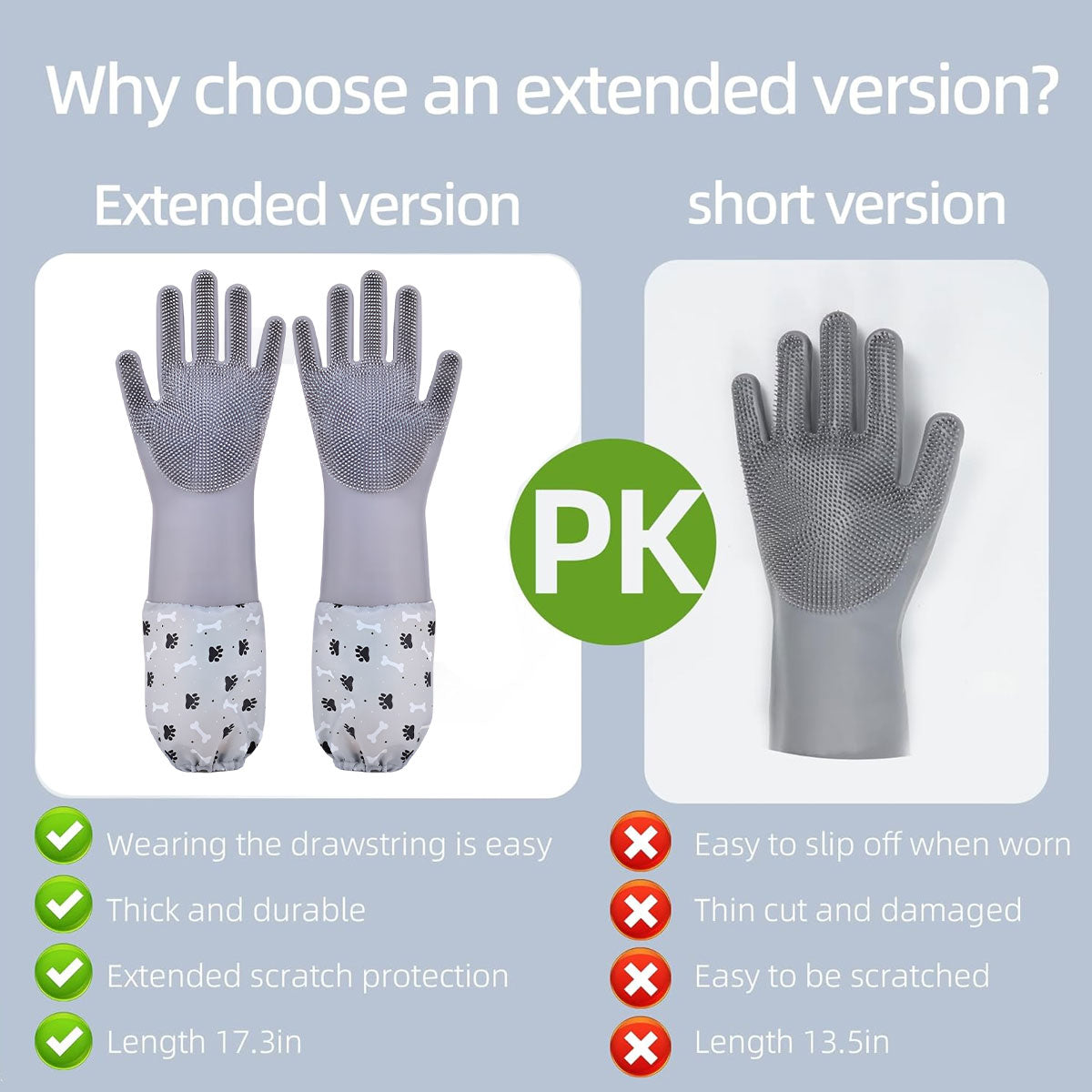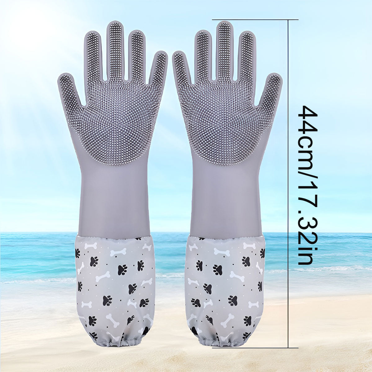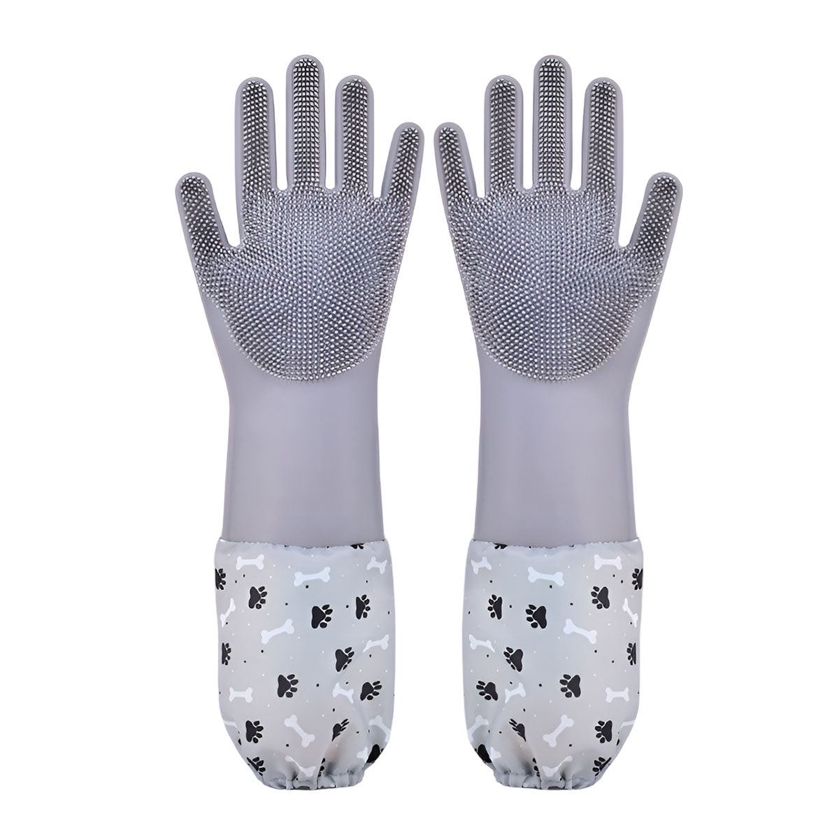 Pet Bathing Silicone Gloves Set Long Cleaning Glove Pair Grooming Supplies Tool