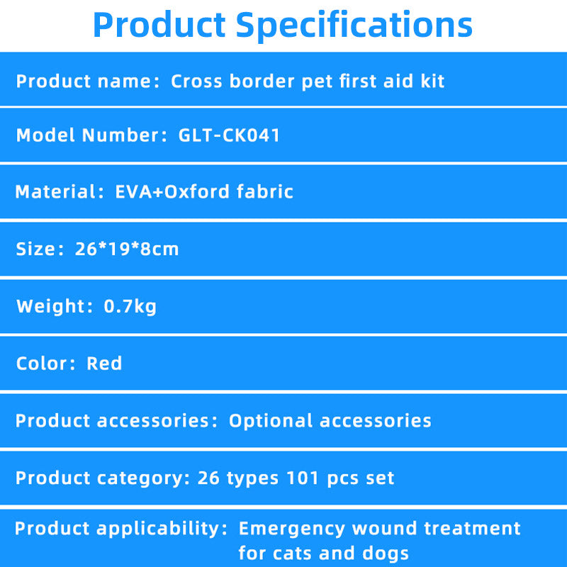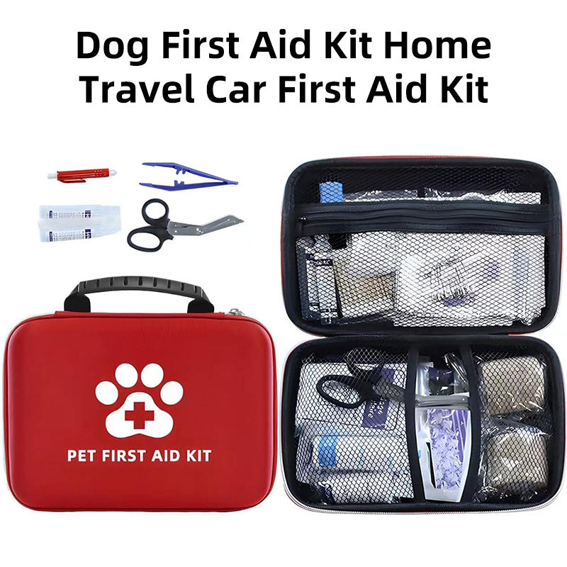 Pet First Aid Kit Emergency Wound Care Set Red Portable Bag for Dogs and Cats