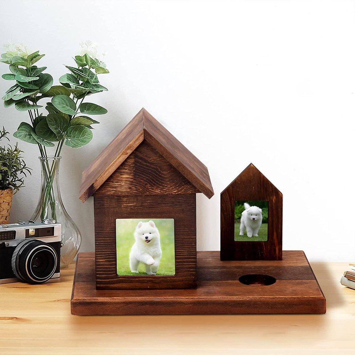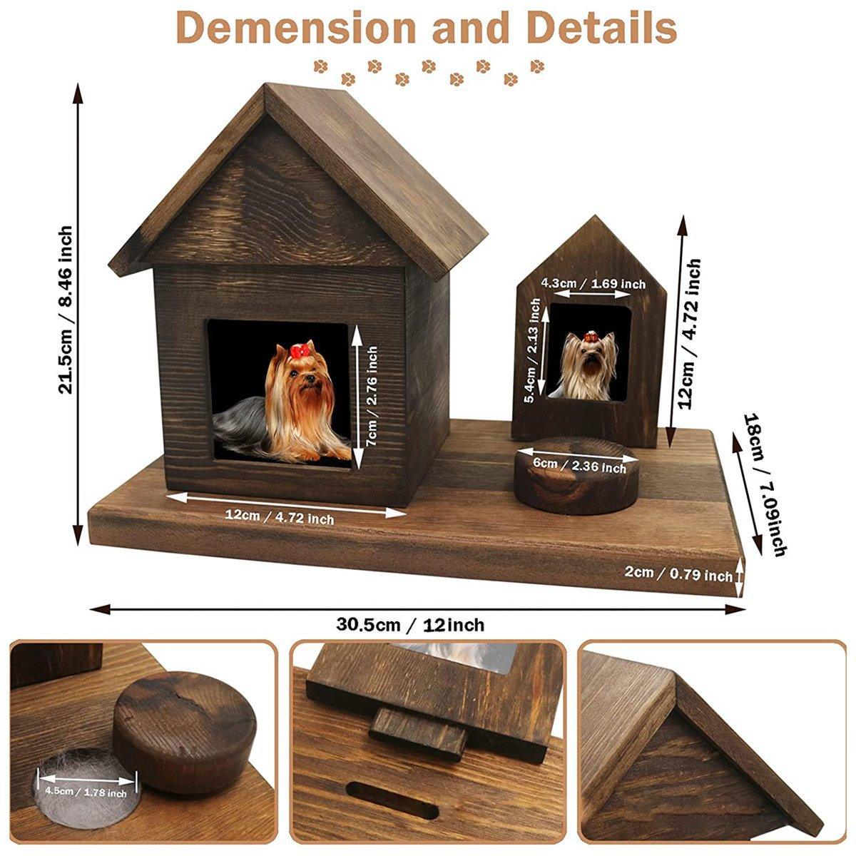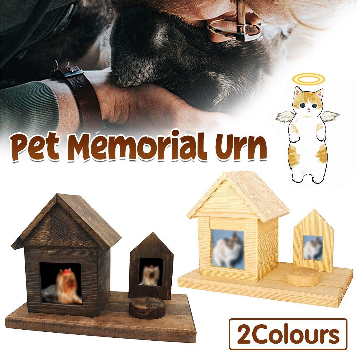 Pet House Urns Dog Cat Ashes Urn with Photo Frame Memory Box Wooden Memorial Pet