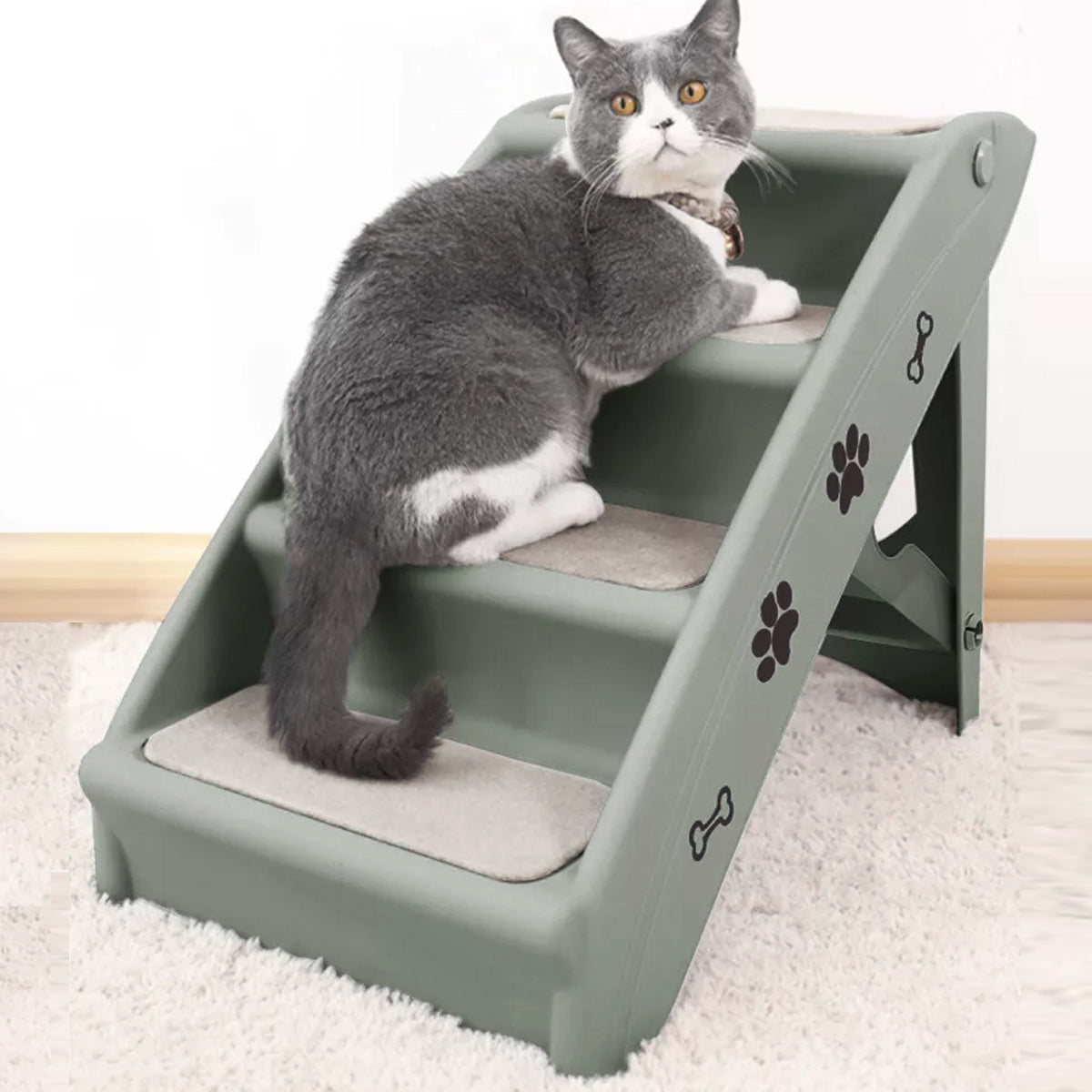 Pet Stairs Ladder Four Storey Light Grey Non Slip Plastic Steps for Dogs and Cat