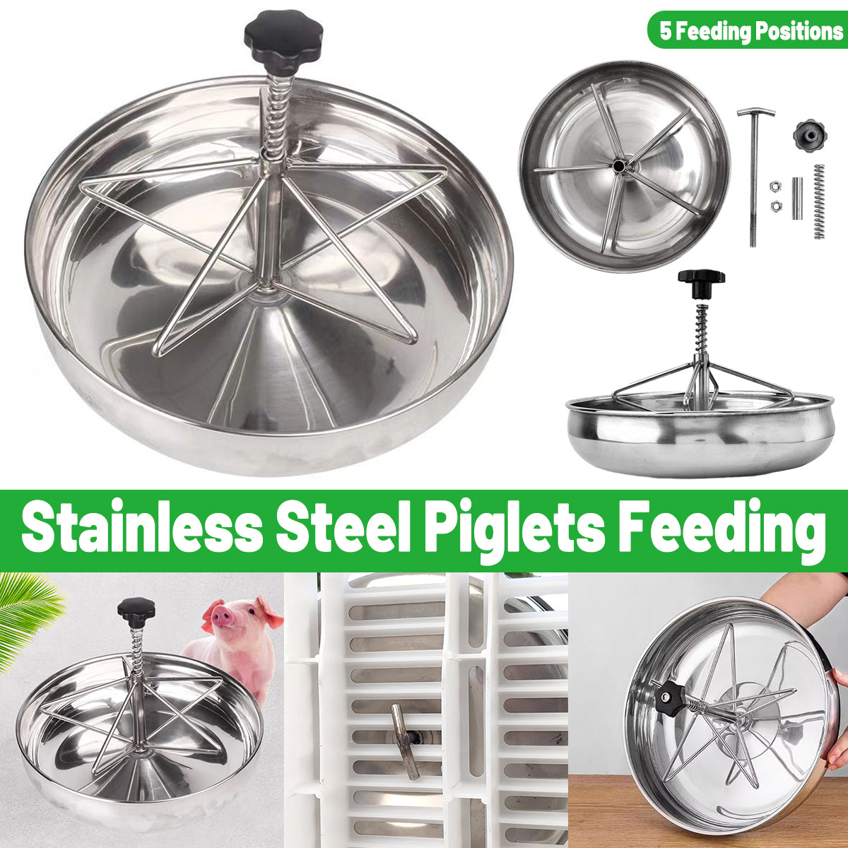 Piglet Feeding Trough Stainless Steel Round Basin Feeder Bowl for Farm Livestock