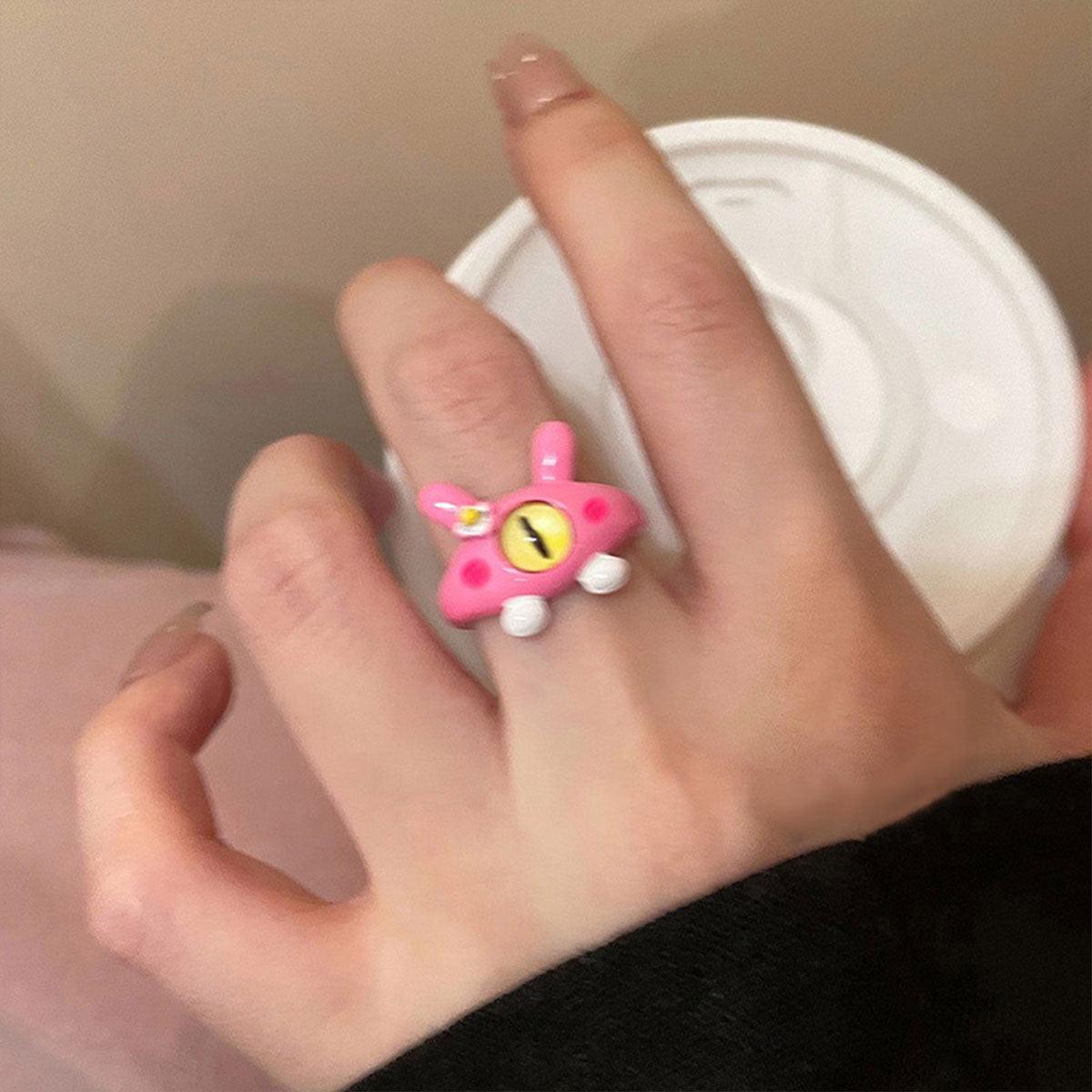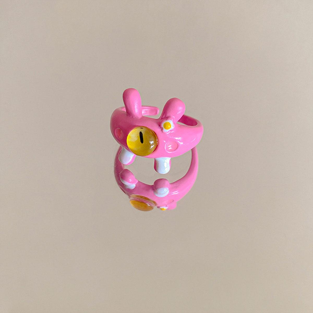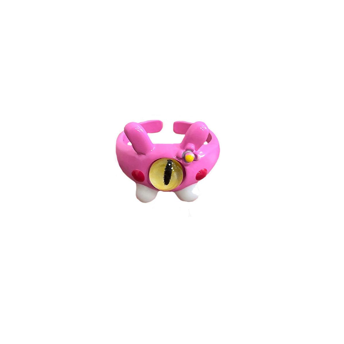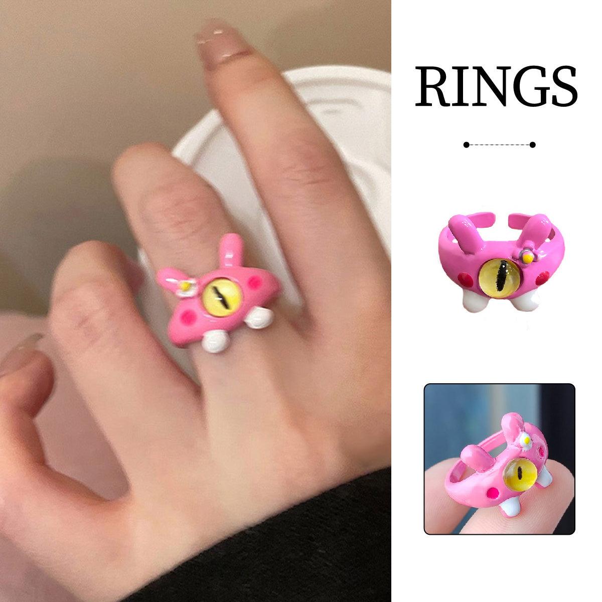 Pink Little Monster Open Ring Cute Kitty Cat Celebrity Sweet Ring Funny Devil Little Pink Rabbit